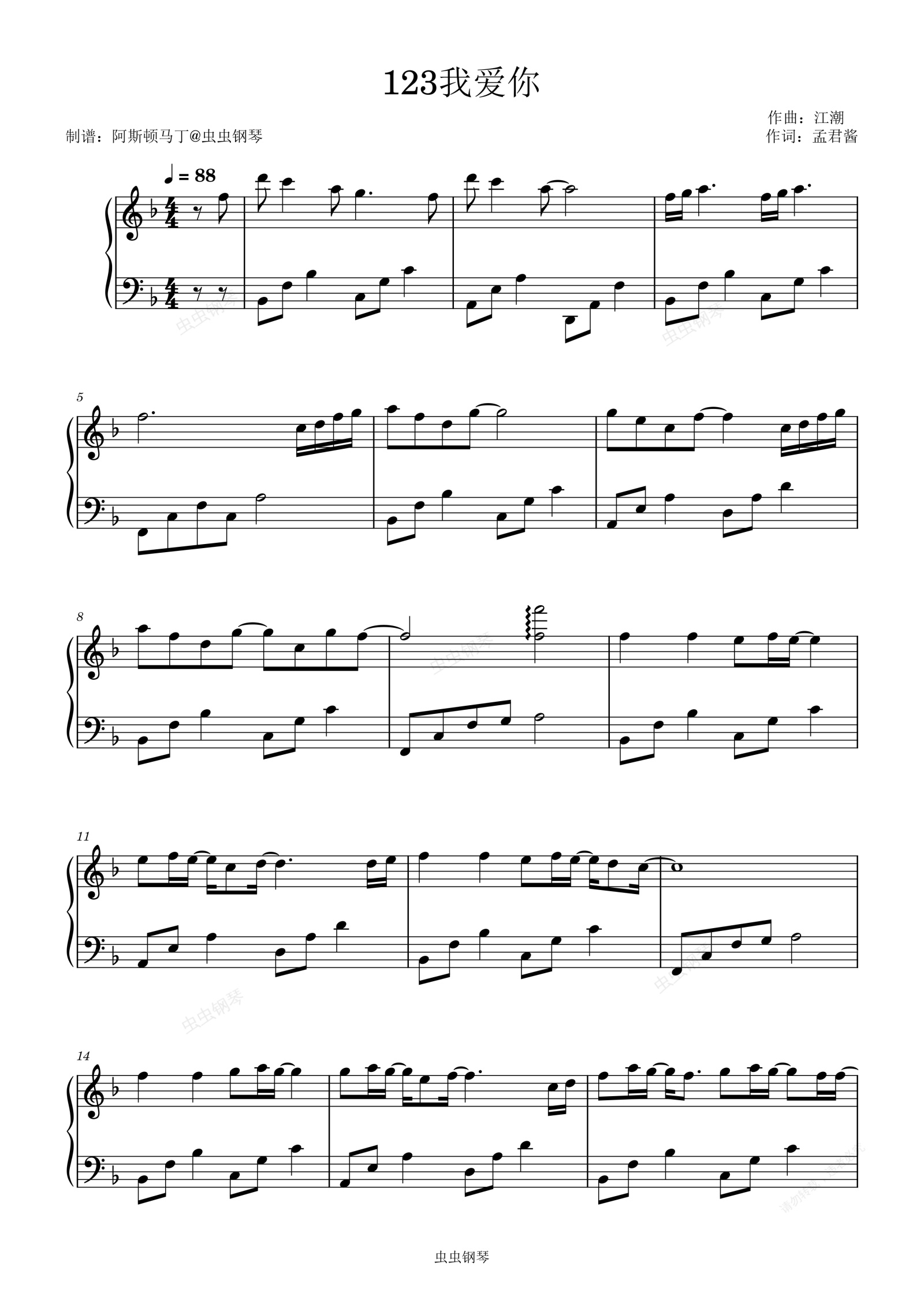钢琴谱:123我爱你 - 新乐尘符【初学C调简易版】