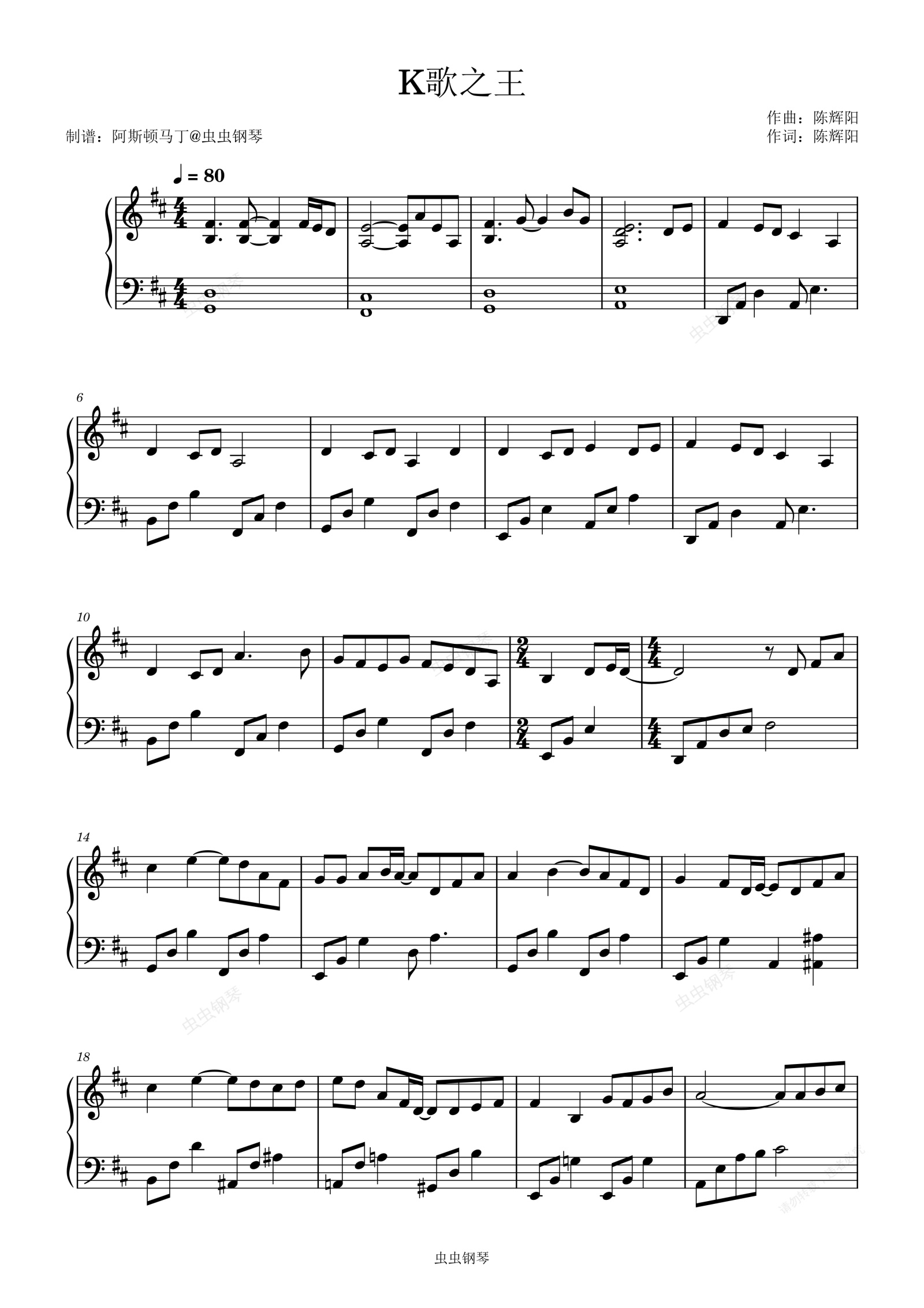 钢琴谱:陈奕迅 - K歌之王【初学简易版】