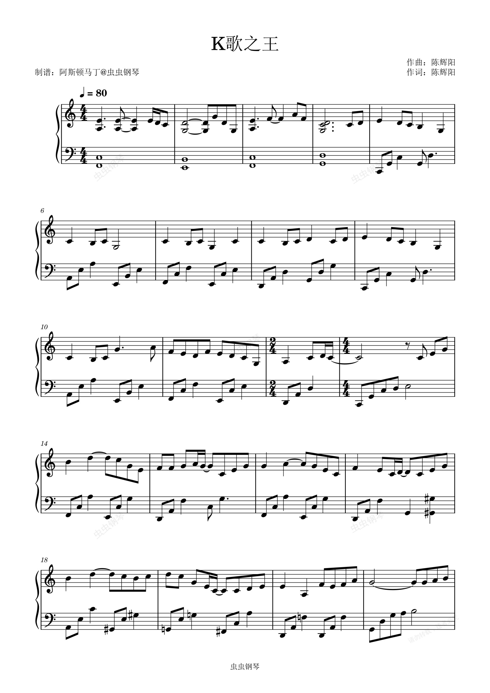 钢琴谱:陈奕迅 - K歌之王【初学C调简易版】