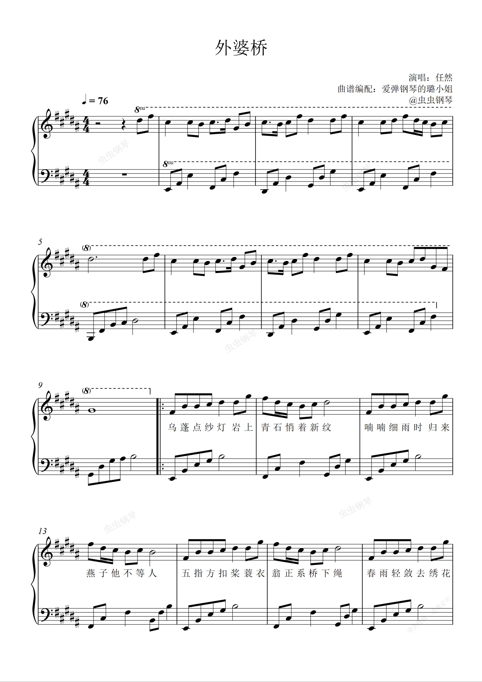 钢琴谱:外婆桥 - 任然 - B调原调简单版 - 附歌词