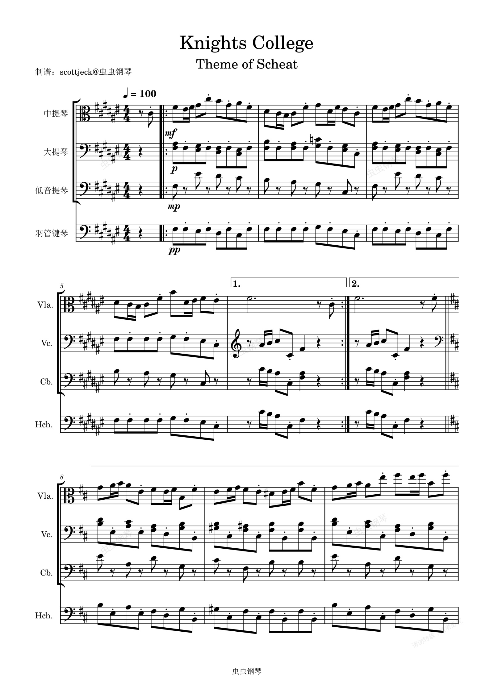 钢琴谱:Theme of Scheat 希埃亚特角色曲 - Knights College 骑士学院