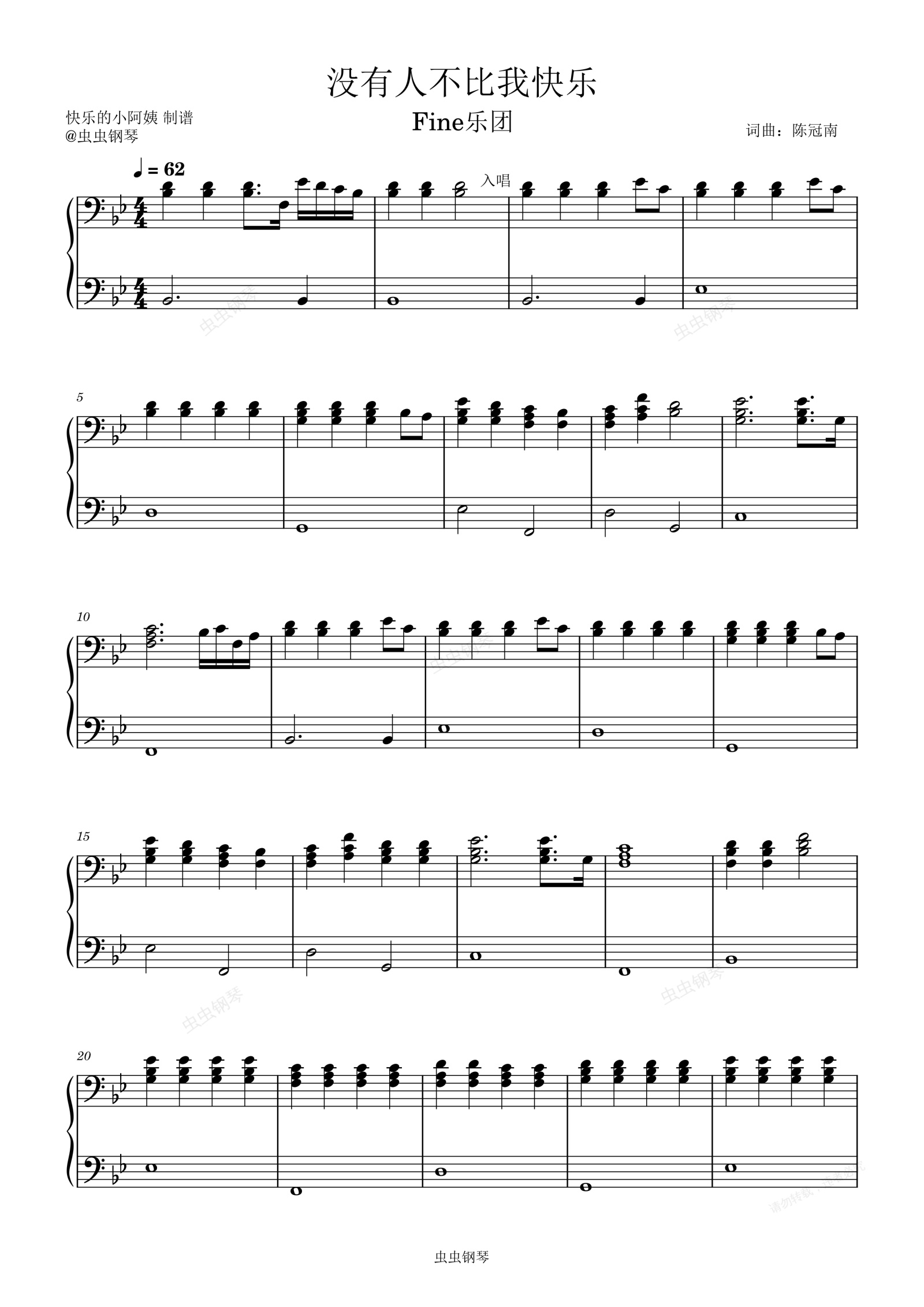 钢琴谱:没有人不比我快乐-降B调弹唱版