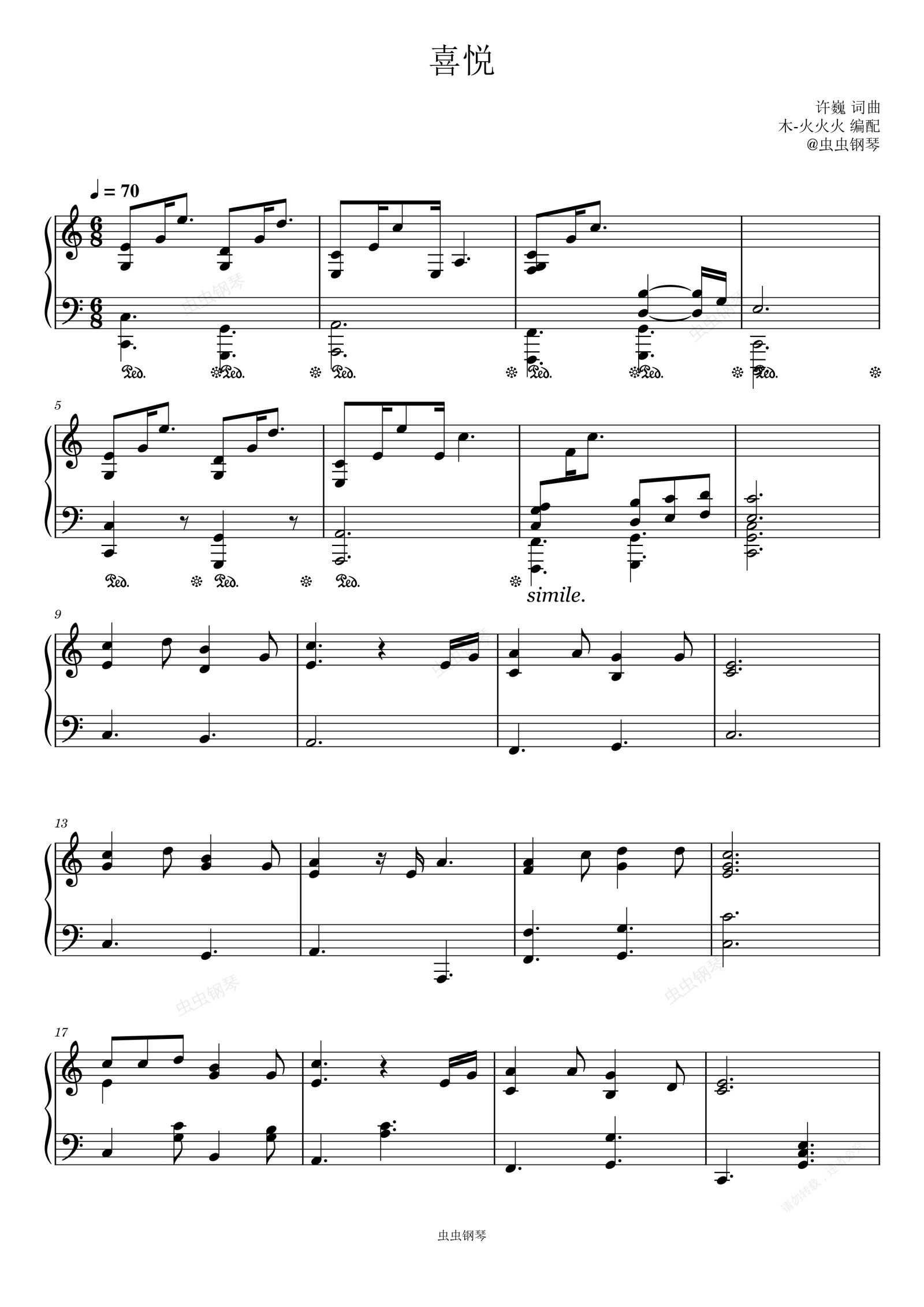 钢琴谱:原声扒谱《喜悦》C调-许巍