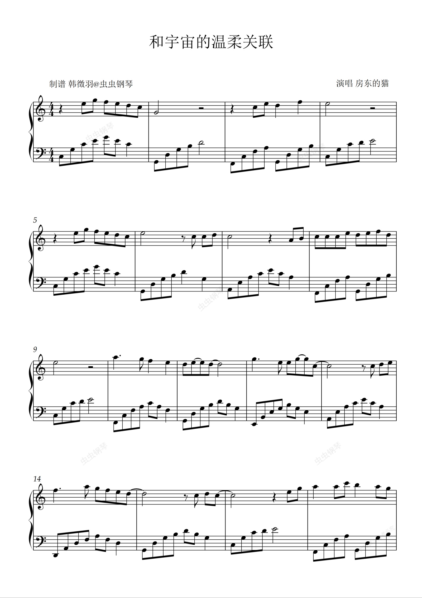 钢琴谱:和宇宙的温柔关联 房东的猫