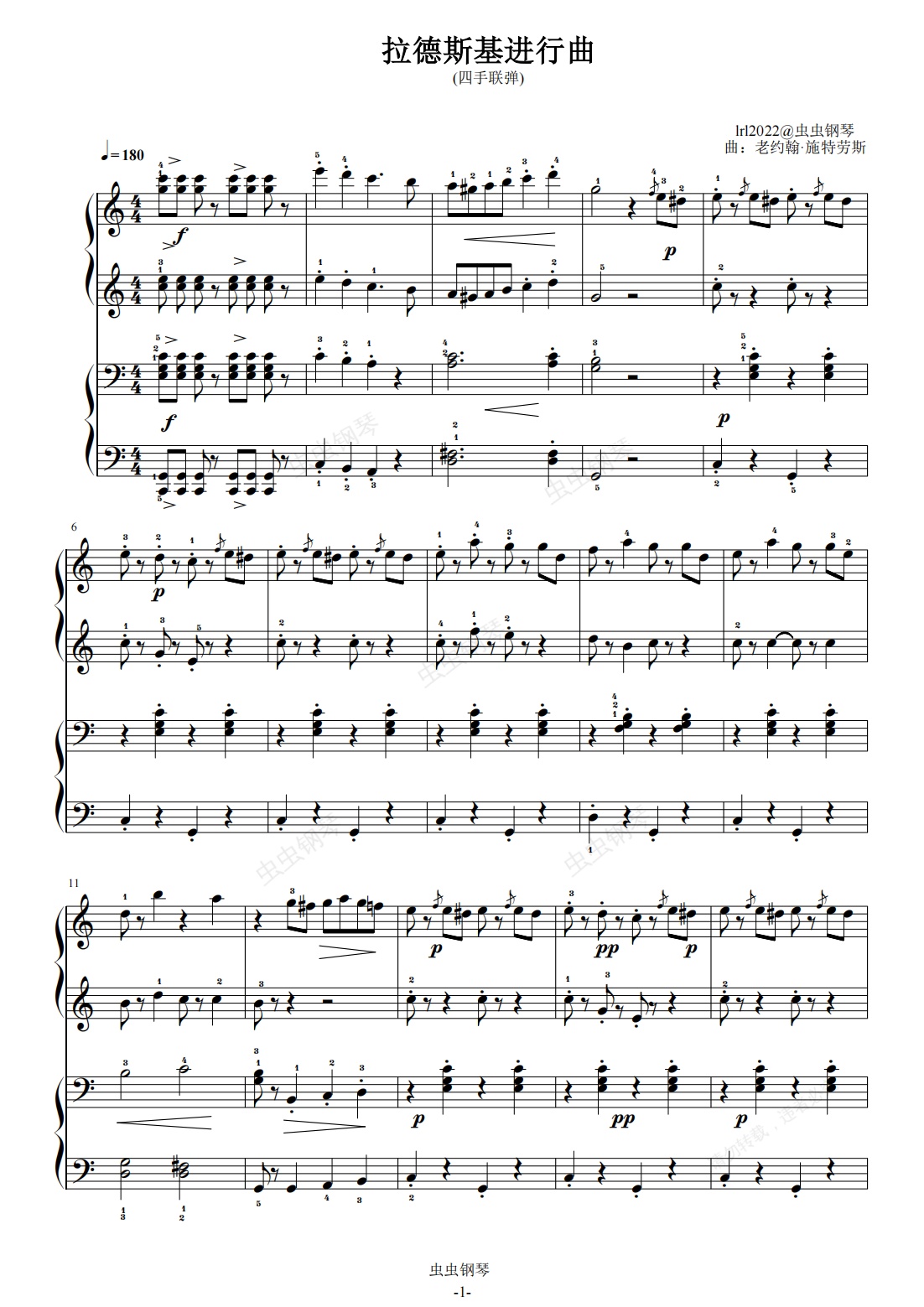 钢琴谱:拉德斯基进行曲-四手联弹-指法谱-Radetzky March