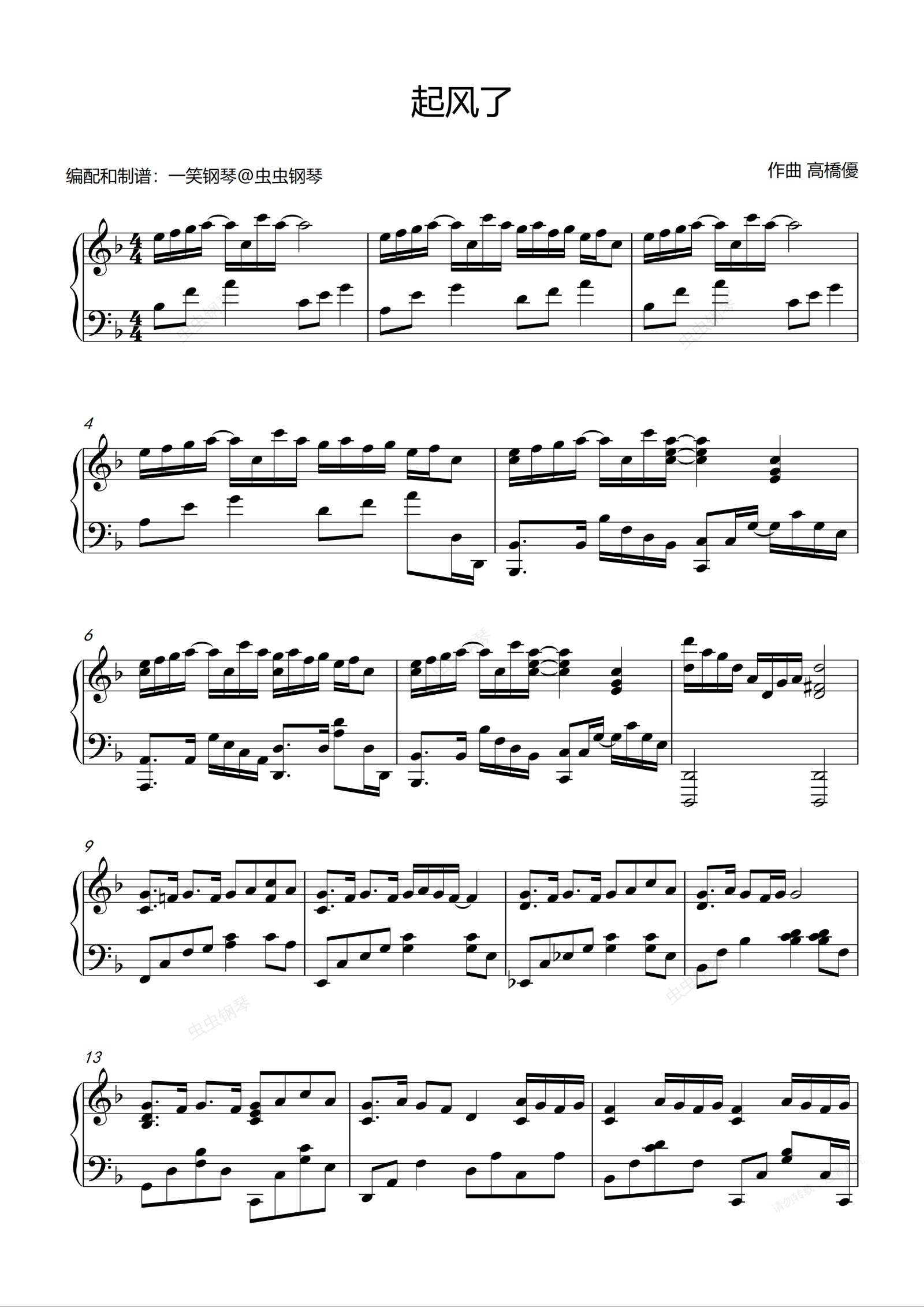 钢琴谱:起风了 - 进阶丰富版(F调)