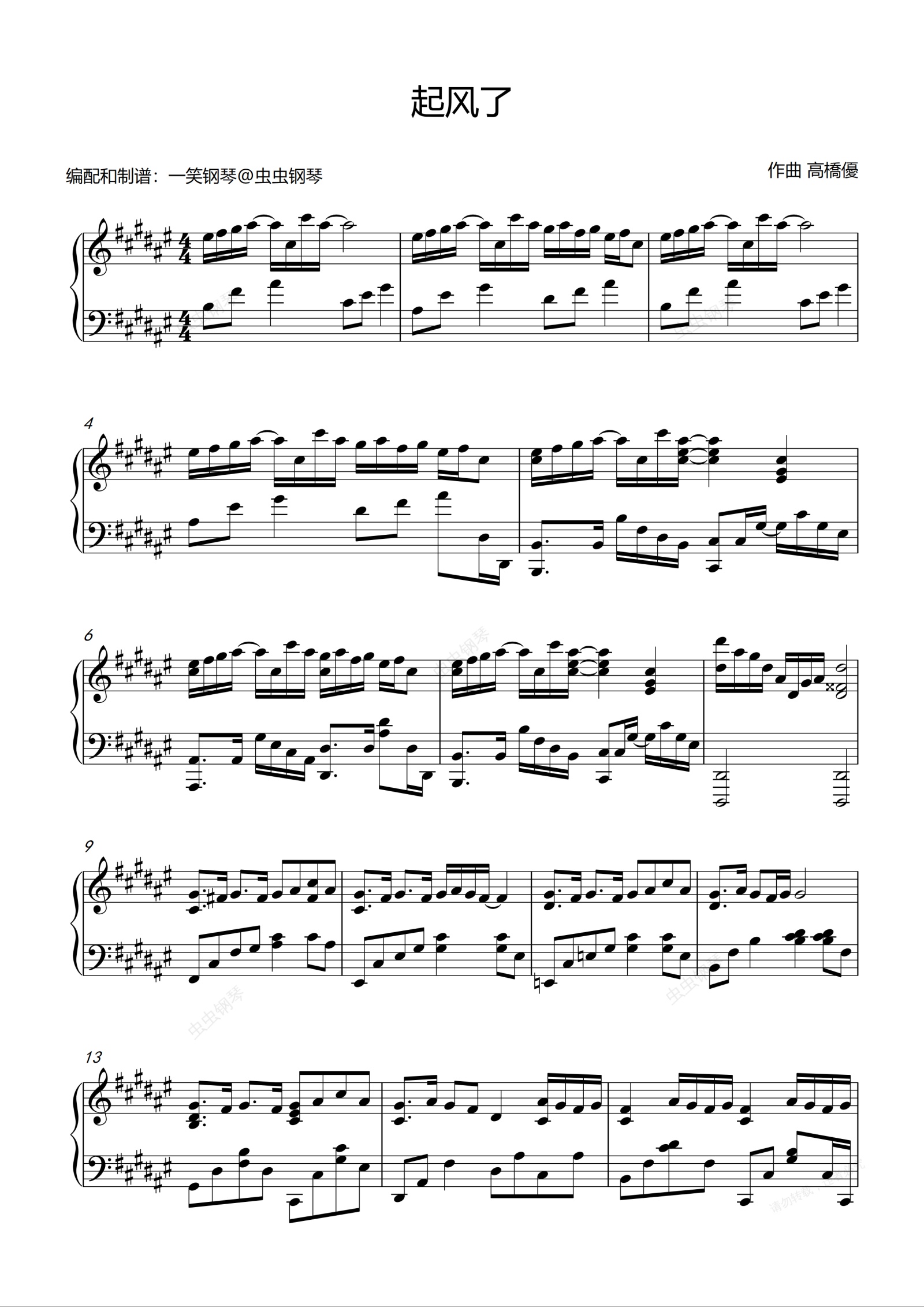钢琴谱:起风了 - 进阶丰富版(原调)