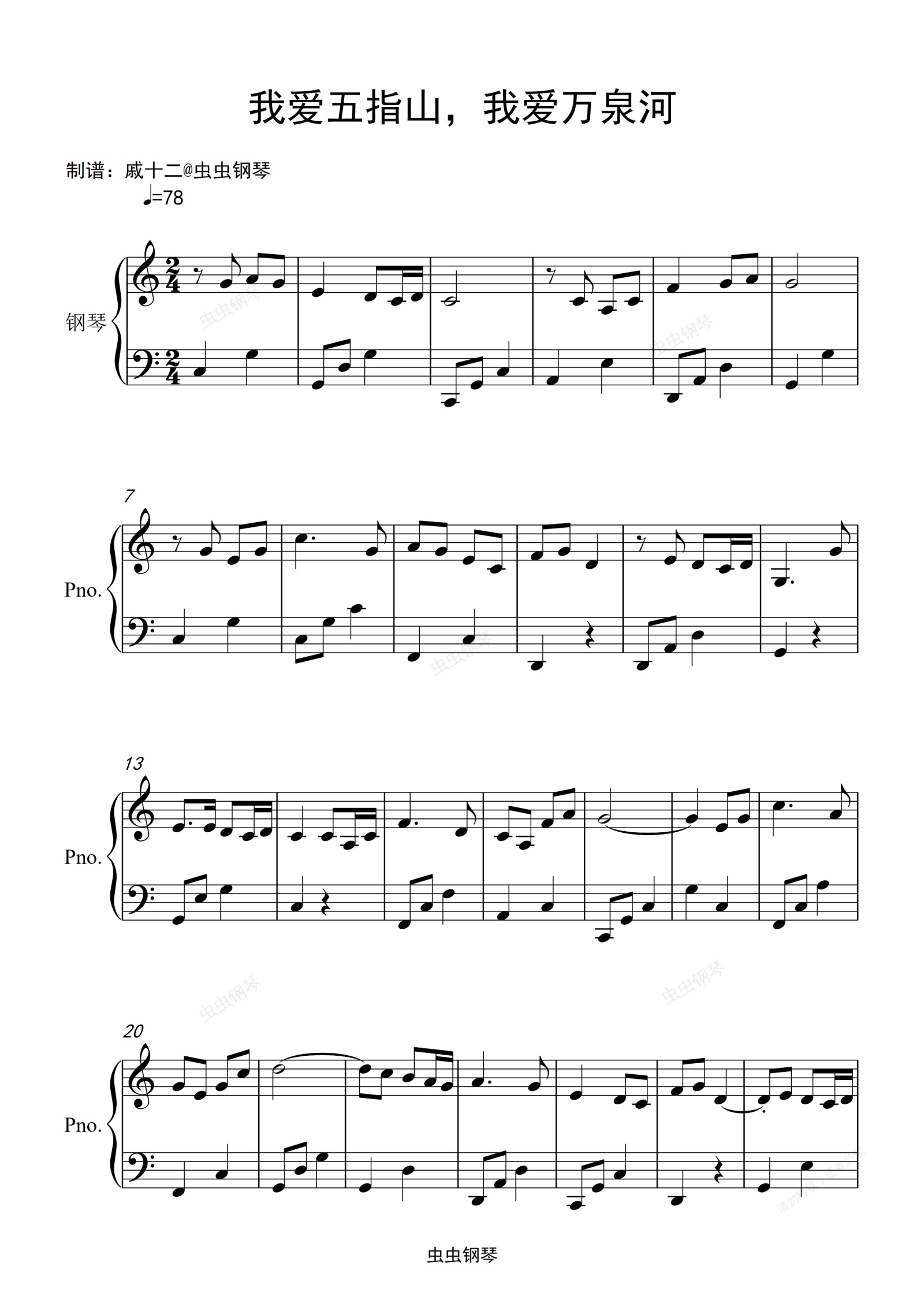 钢琴谱:我爱五指山,我爱万泉河-C调简单版
