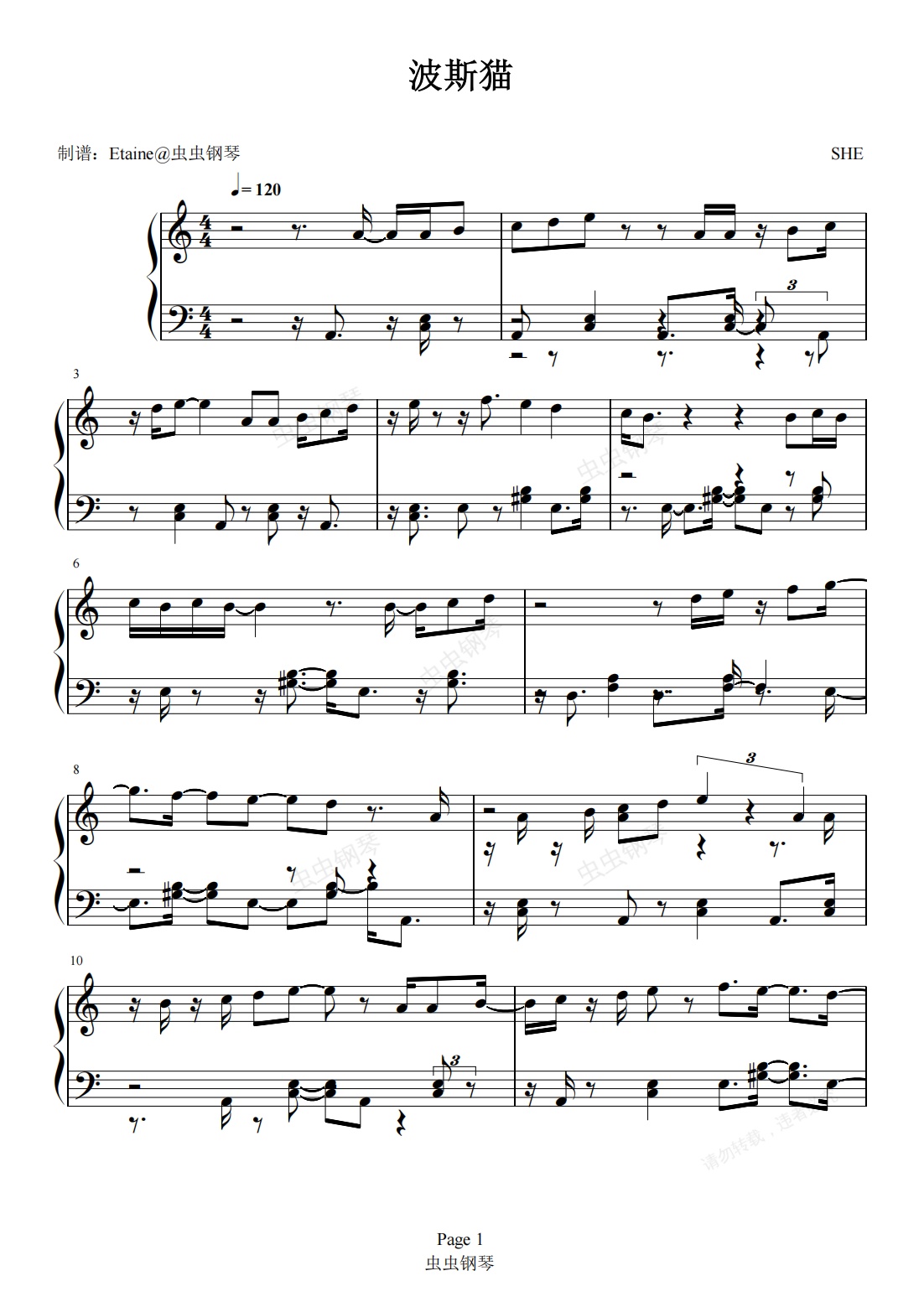 钢琴谱:SHE《波斯猫》钢琴谱 五线谱 正谱