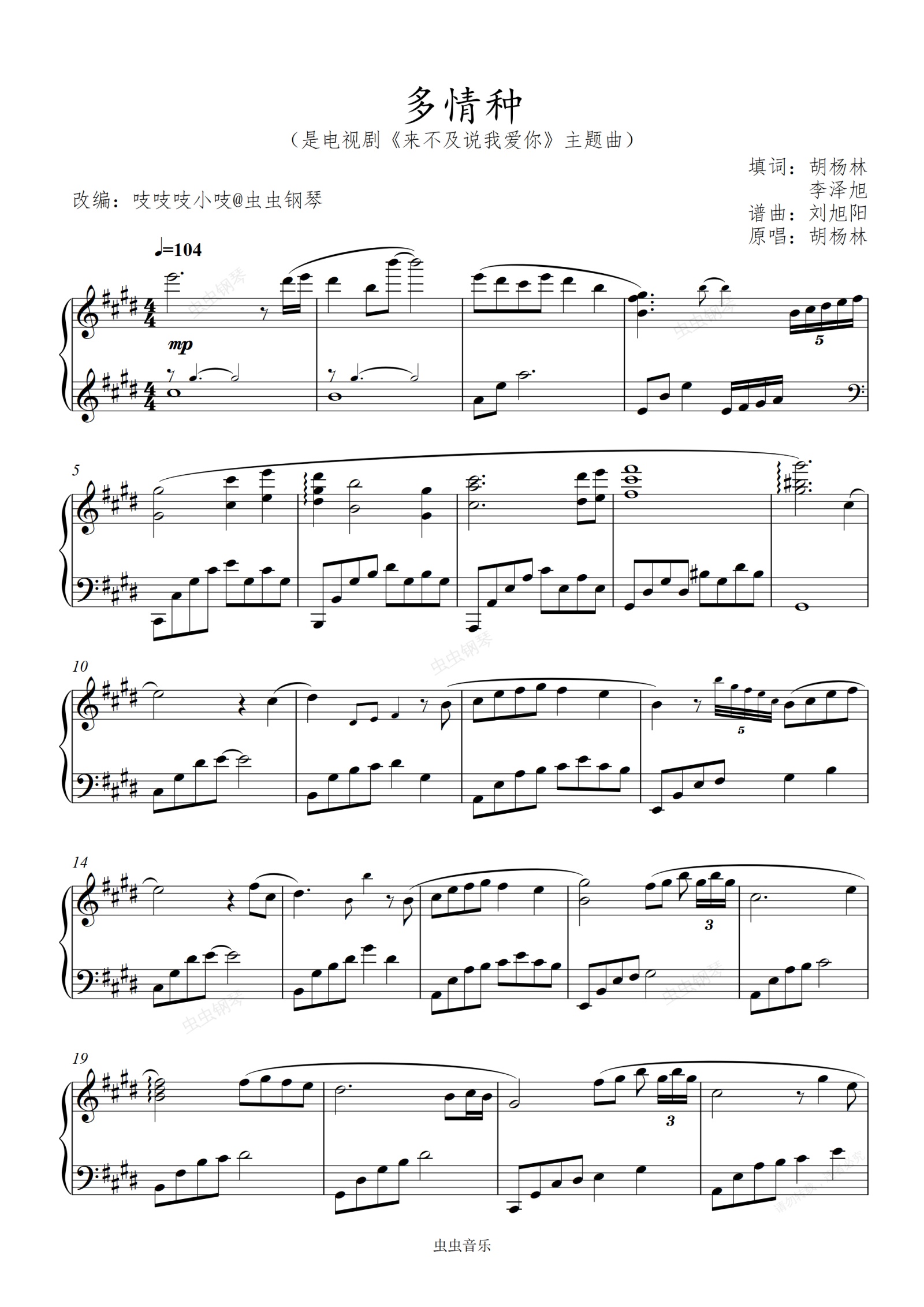 钢琴谱:多情种 原调 电视剧《来不及说我爱你》主题曲