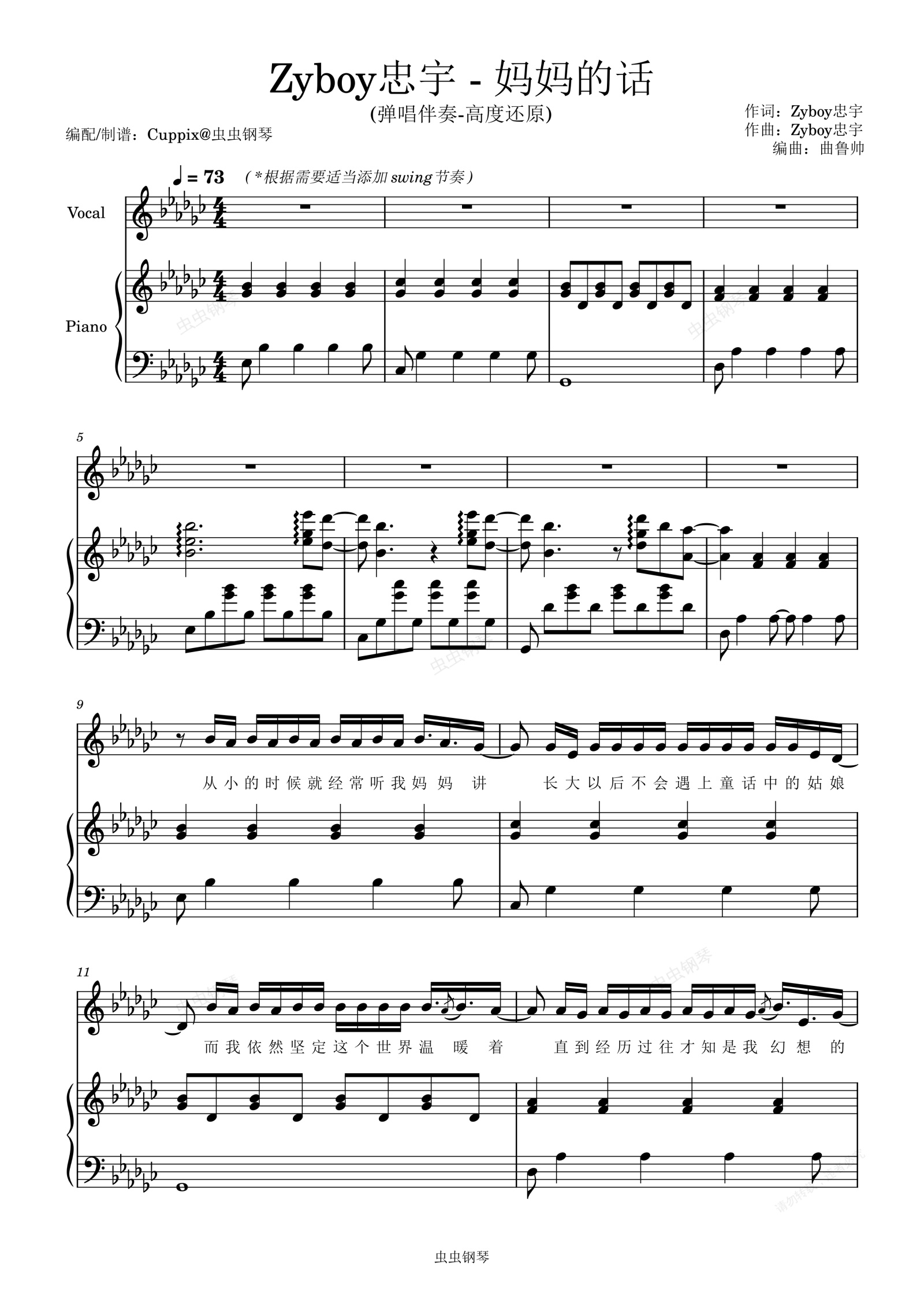 钢琴谱:《妈妈的话》弹唱伴奏-高度还原(Zyboy忠宇)