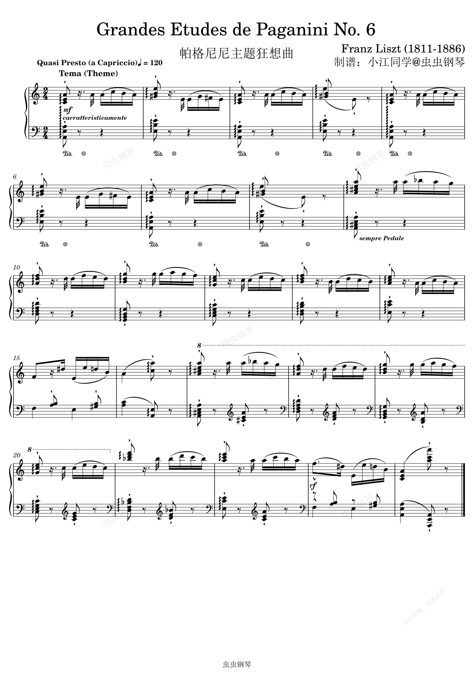 钢琴谱:帕格尼尼主题狂想曲 李斯特改编