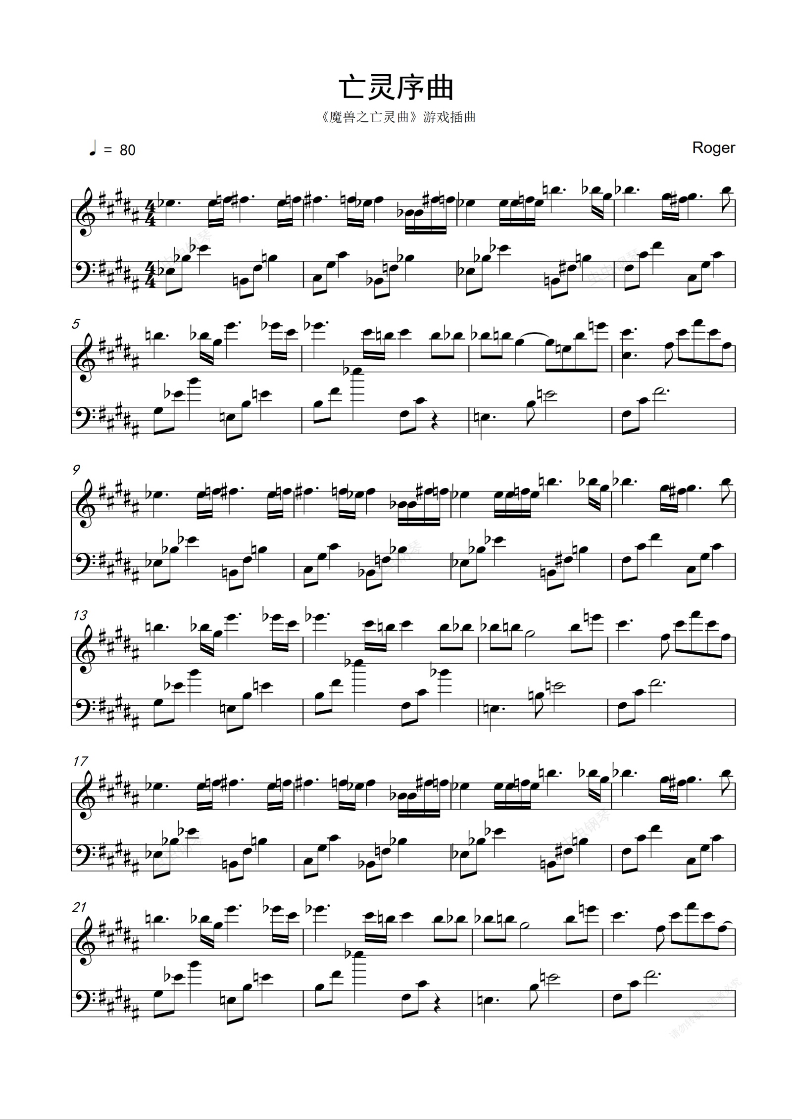 钢琴谱:亡灵序曲-《魔兽之亡灵曲》-Intro: The Dawn 游戏插曲
