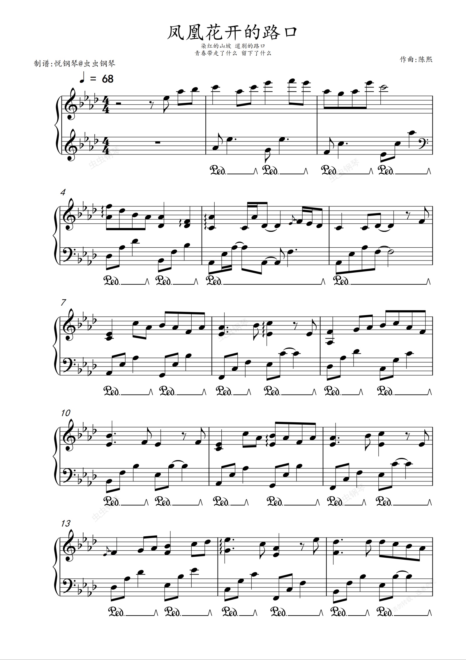 钢琴谱:凤凰花开的路口 (原调版)林志炫