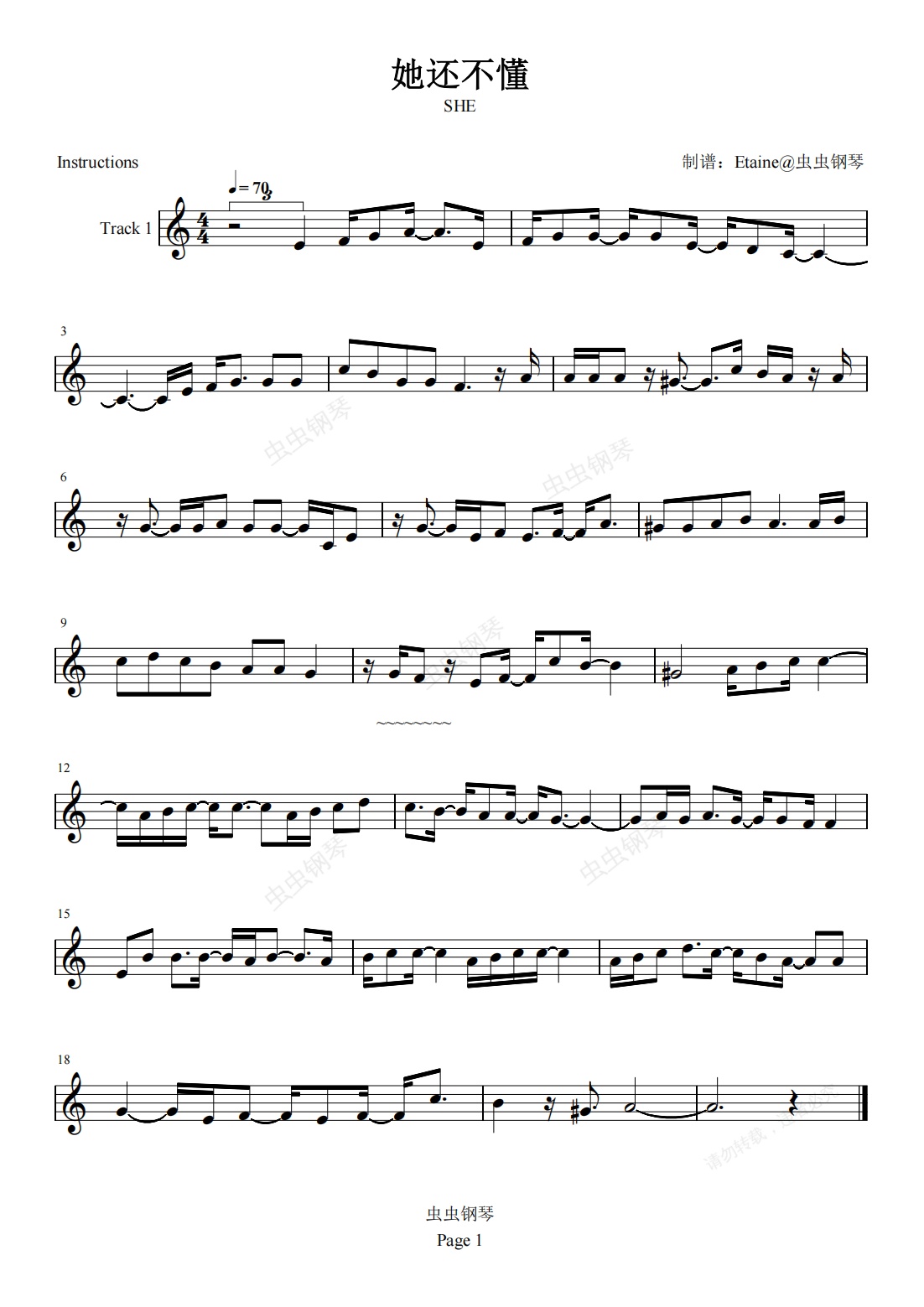 钢琴谱:SHE《他还是不懂》钢琴谱