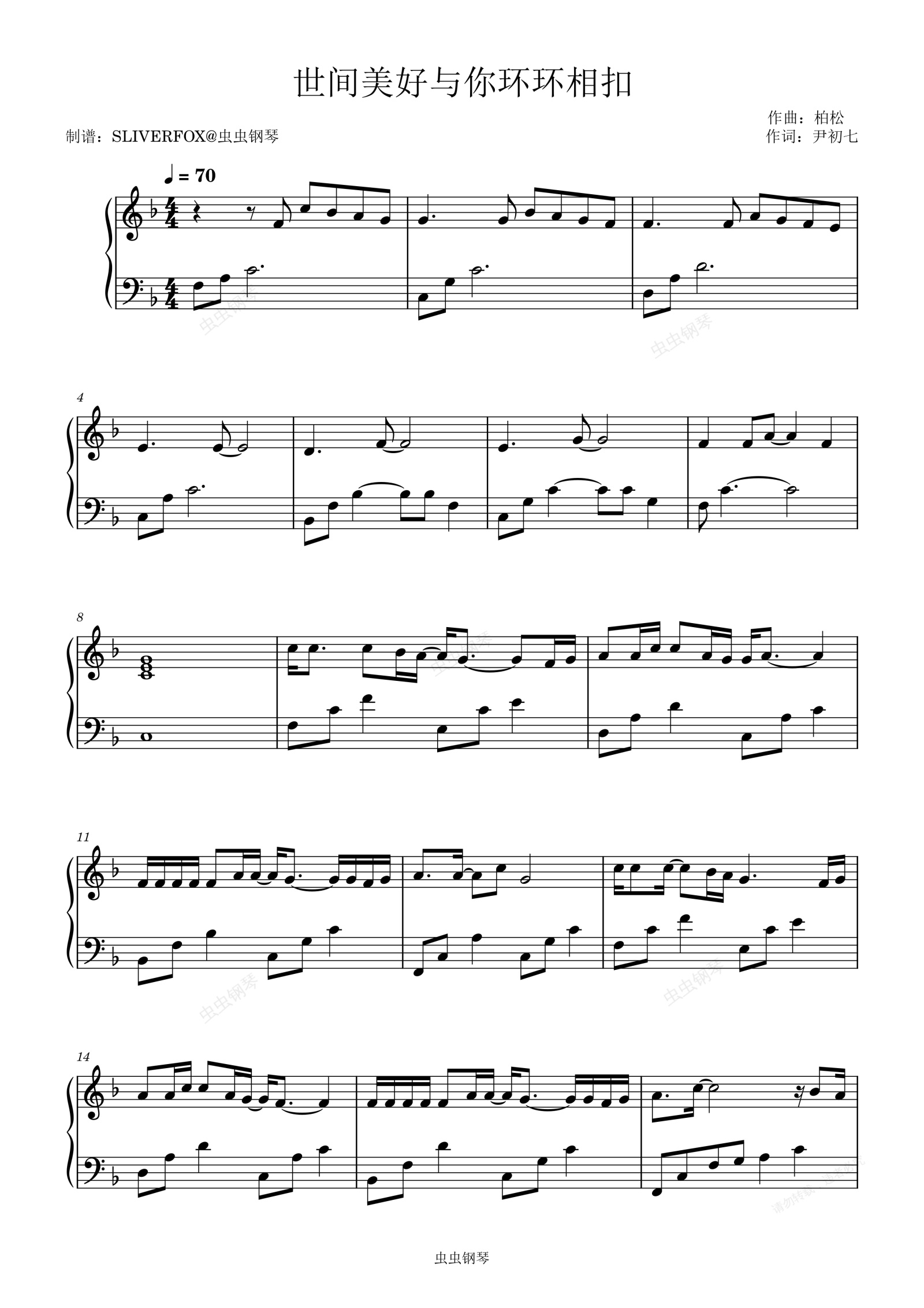 钢琴谱:《世间美好与你环环相扣》简易流行版F调