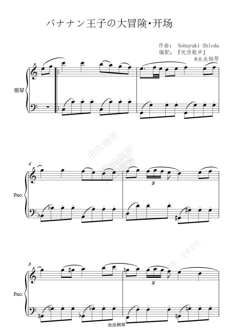 钢琴谱:【FC】香蕉网子大冒险・开场——『忧伤歌声』