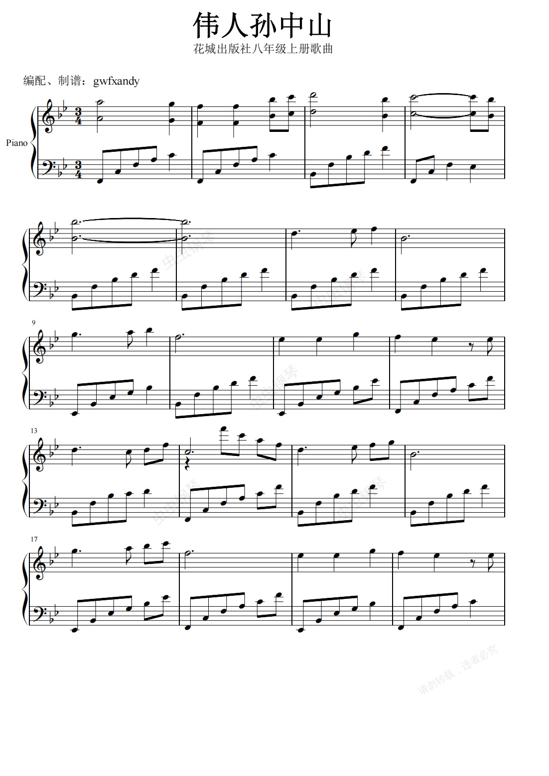 钢琴谱:伟人孙中山(原调)
