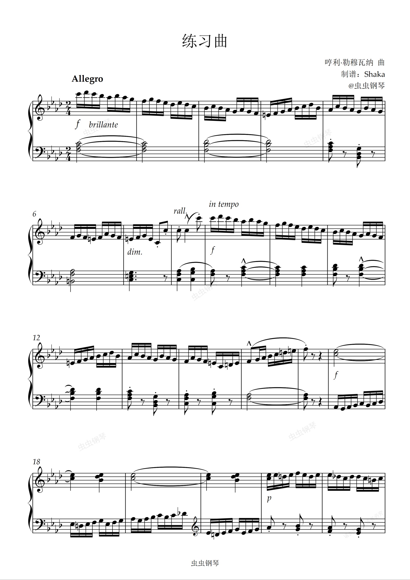 钢琴谱:练习曲 勒穆瓦纳 f调精编版 上海音乐学院2020版4级考级曲目