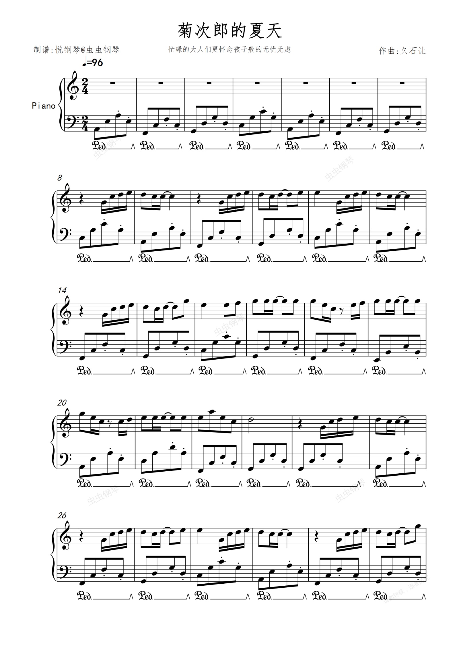 钢琴谱:菊次郎的夏天 Summer (C调简易版)