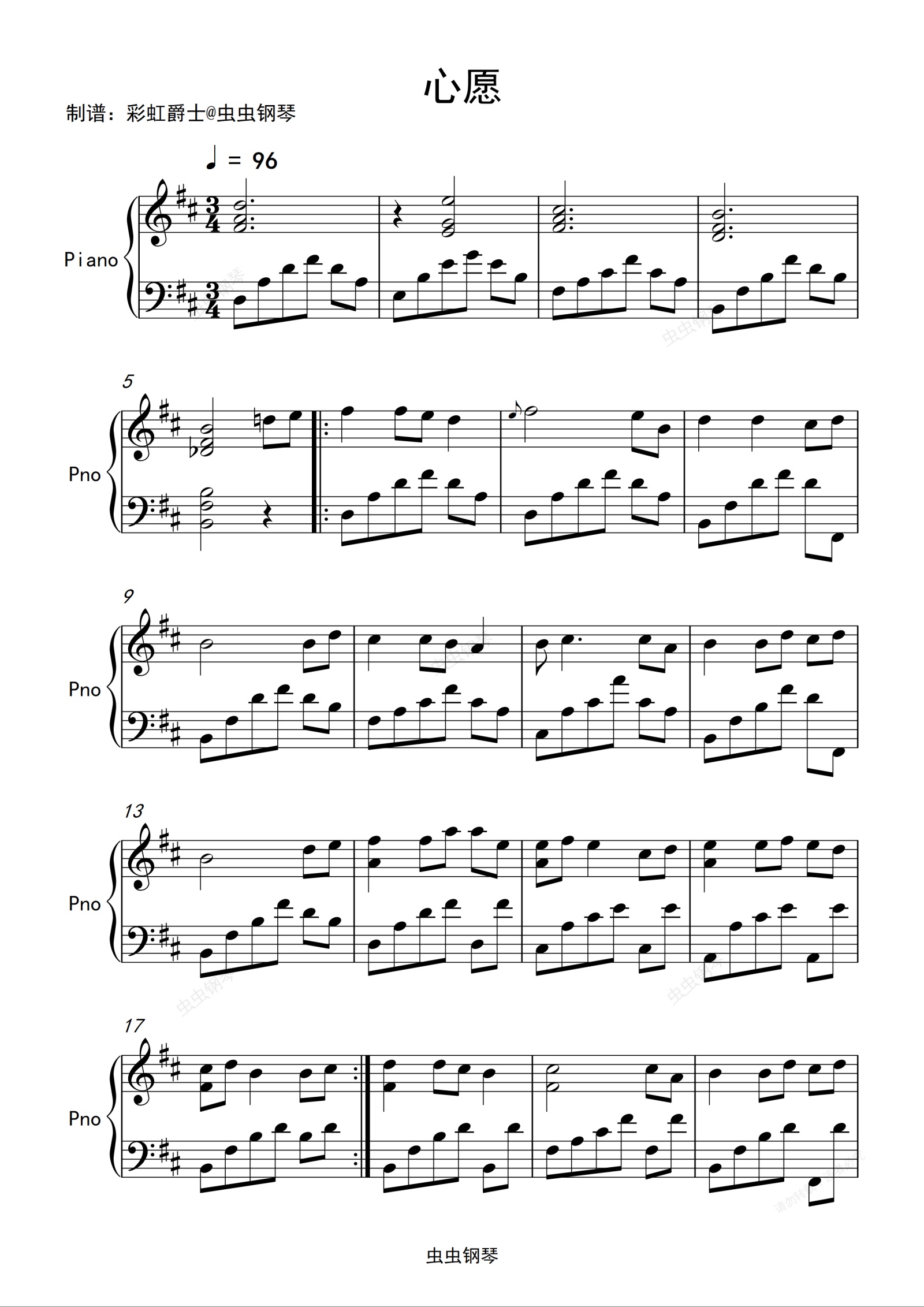 钢琴谱:心愿-完美版 王泽 杨颖 乔媛 唐景莲