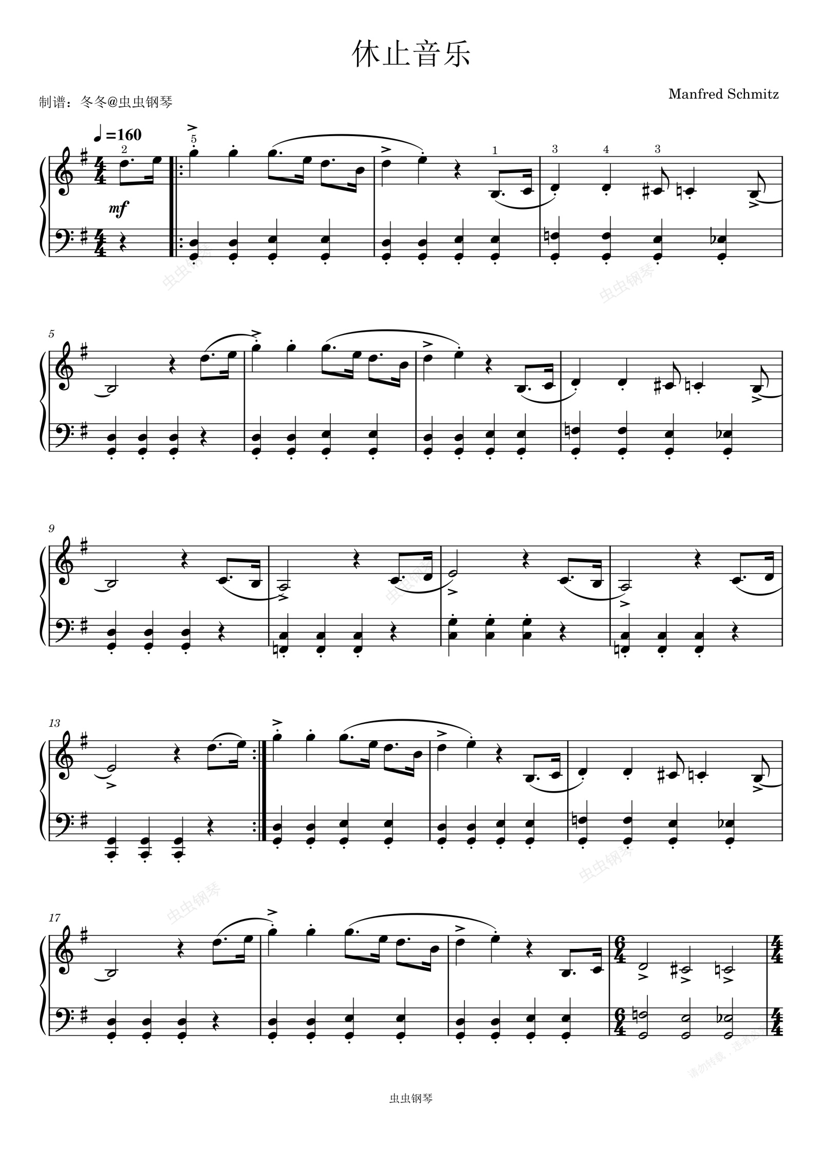 钢琴谱:休止音乐