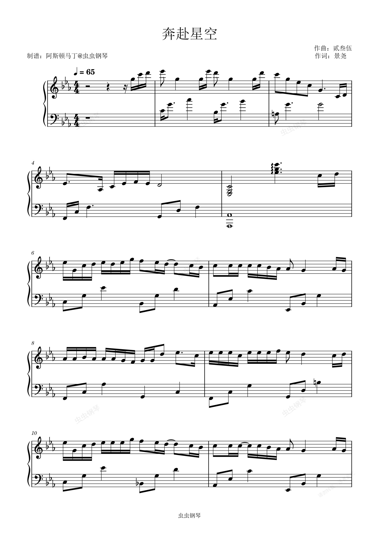 钢琴谱:奔赴星空 - 尹昔眠/小田音乐社【初学简易版】