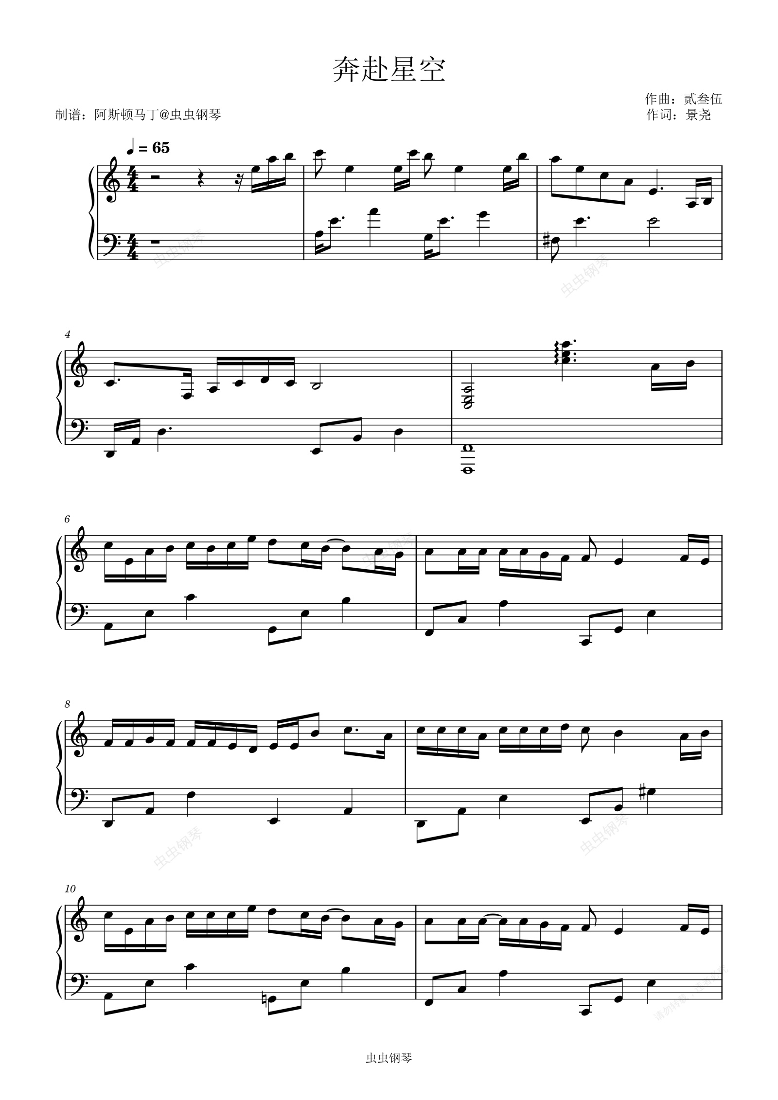 钢琴谱:奔赴星空 - 尹昔眠/小田音乐社【初学简易版】