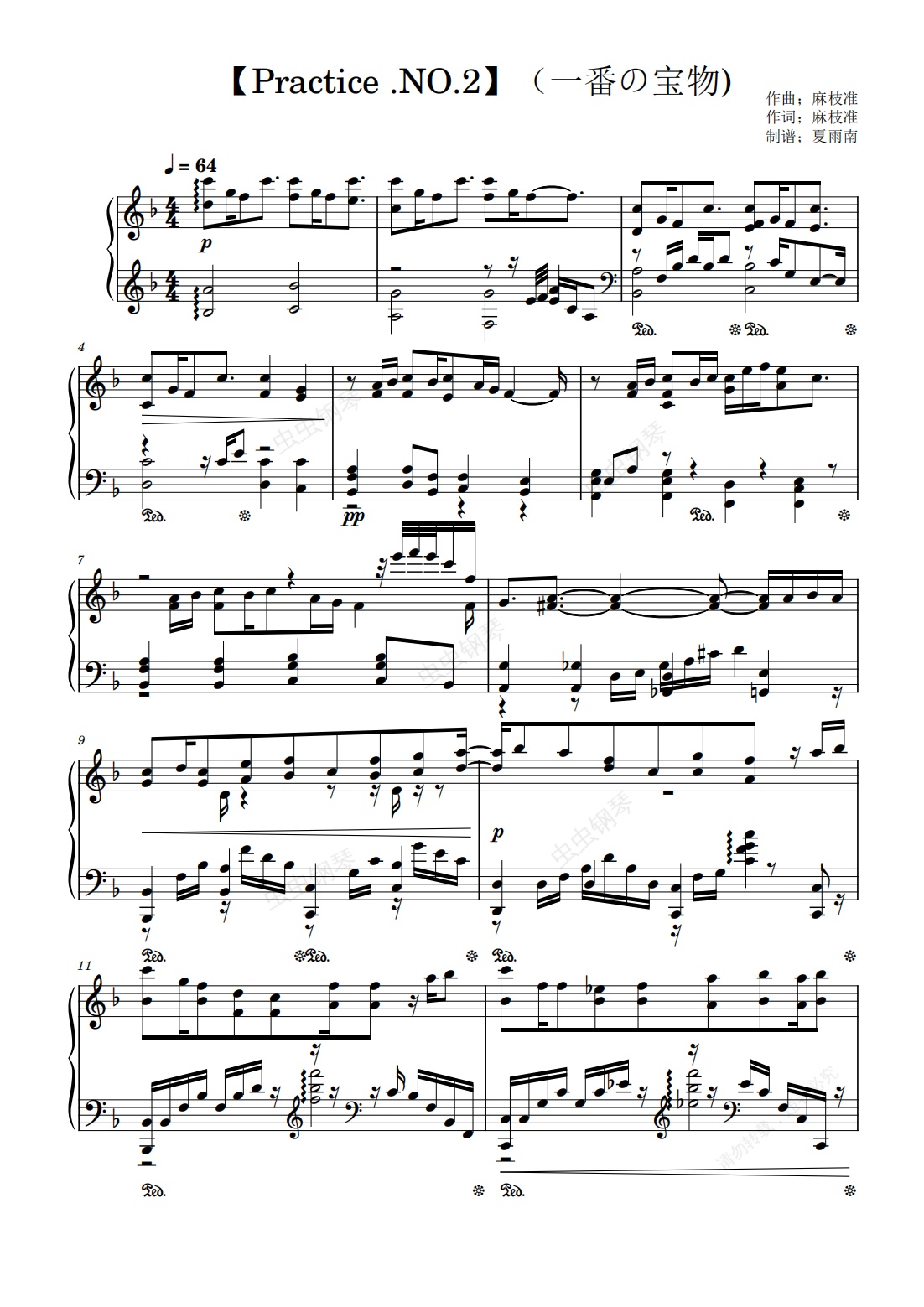 钢琴谱:一番の宝物(一番的宝物)多声部唯美独奏版