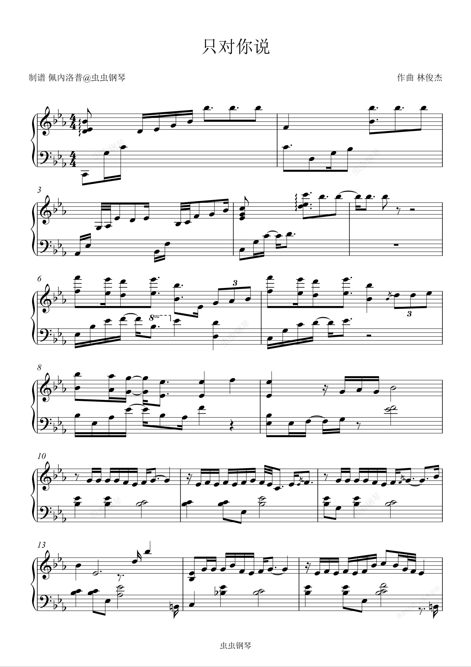 钢琴谱:只对你说-完美还原【佩內洛普】