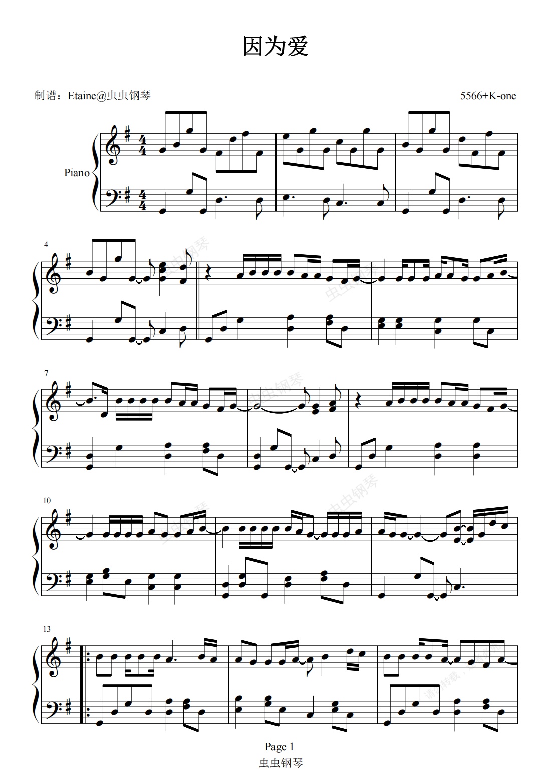 钢琴谱:因为爱 钢琴谱