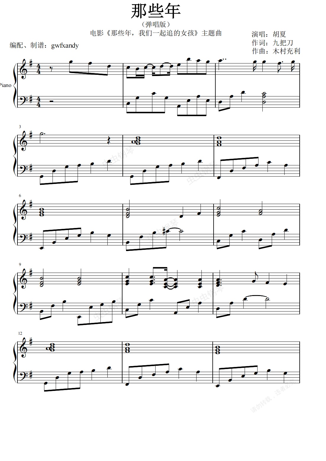 钢琴谱:《那些年》弹唱版