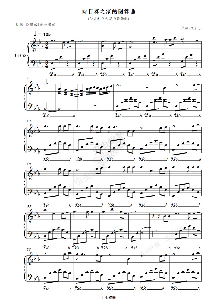 钢琴谱:向日葵家的轮舞曲(ひまわりの家の轮舞曲) 悬崖上的金鱼公主 插曲 久石让