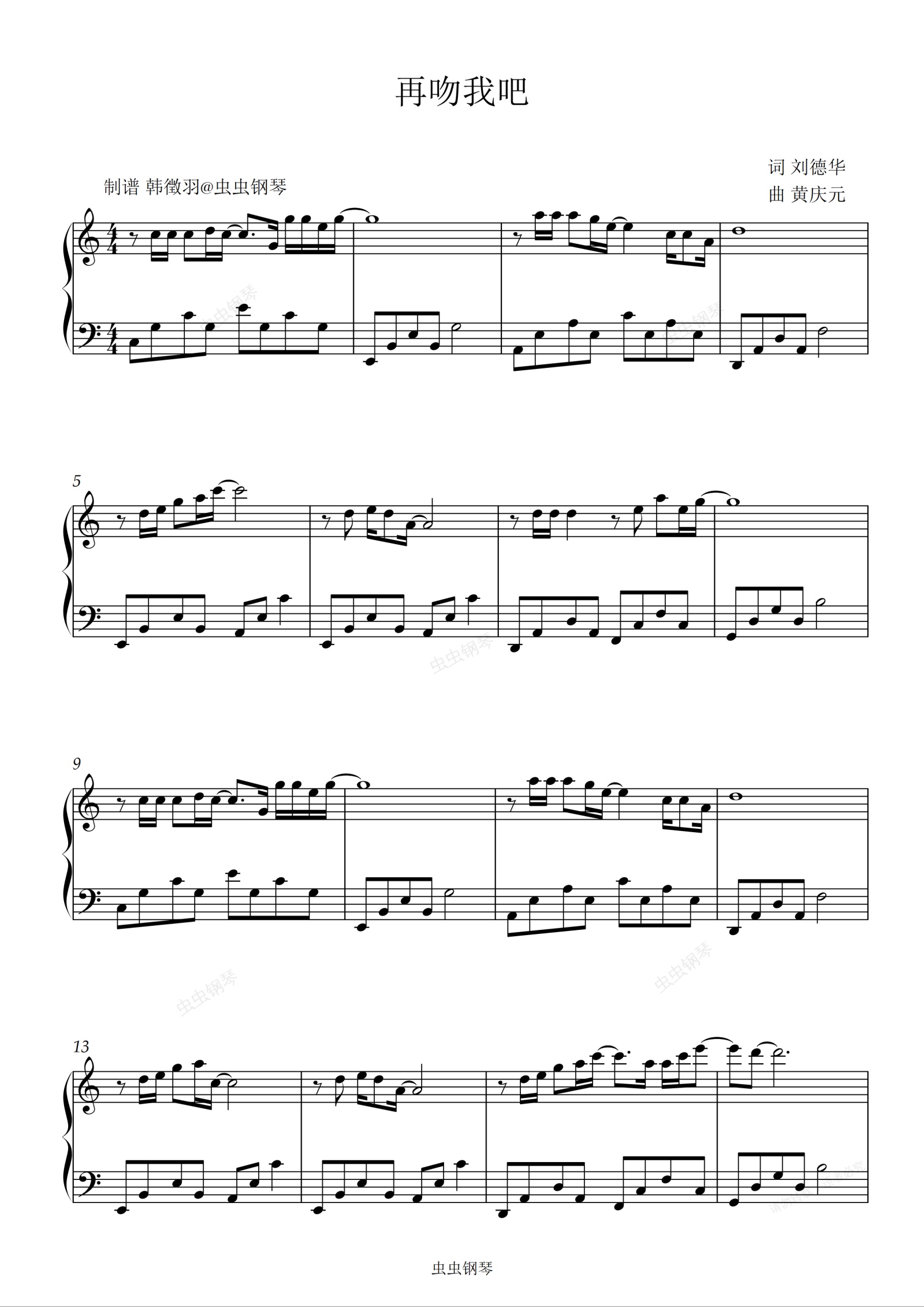 钢琴谱:刘德华 再吻我吧 C调简易版