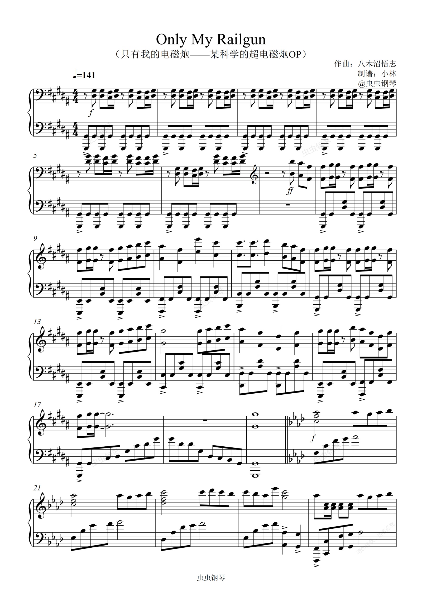 钢琴谱:Only My Railgun(只有我的超电磁炮——某科学的超电磁炮OP)