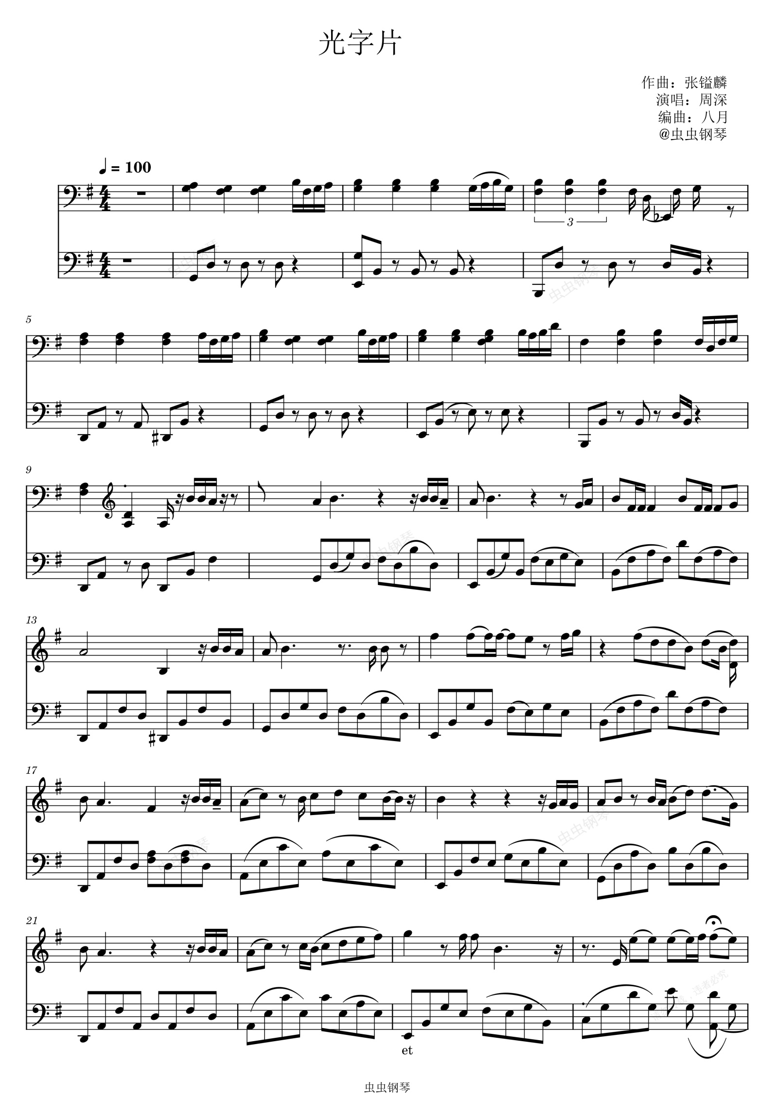 钢琴谱:光字片 - 《人世间》插曲 - 周深