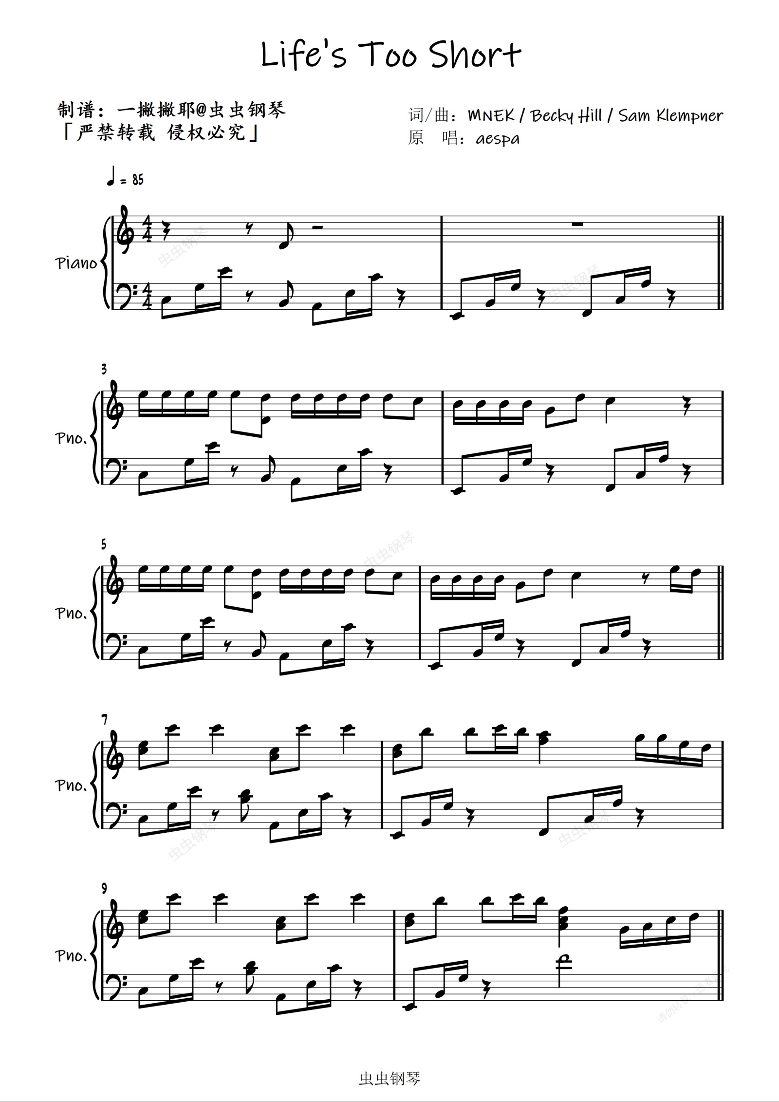 钢琴谱:Life's Too Short【独奏谱】aespa「一撇撇耶」