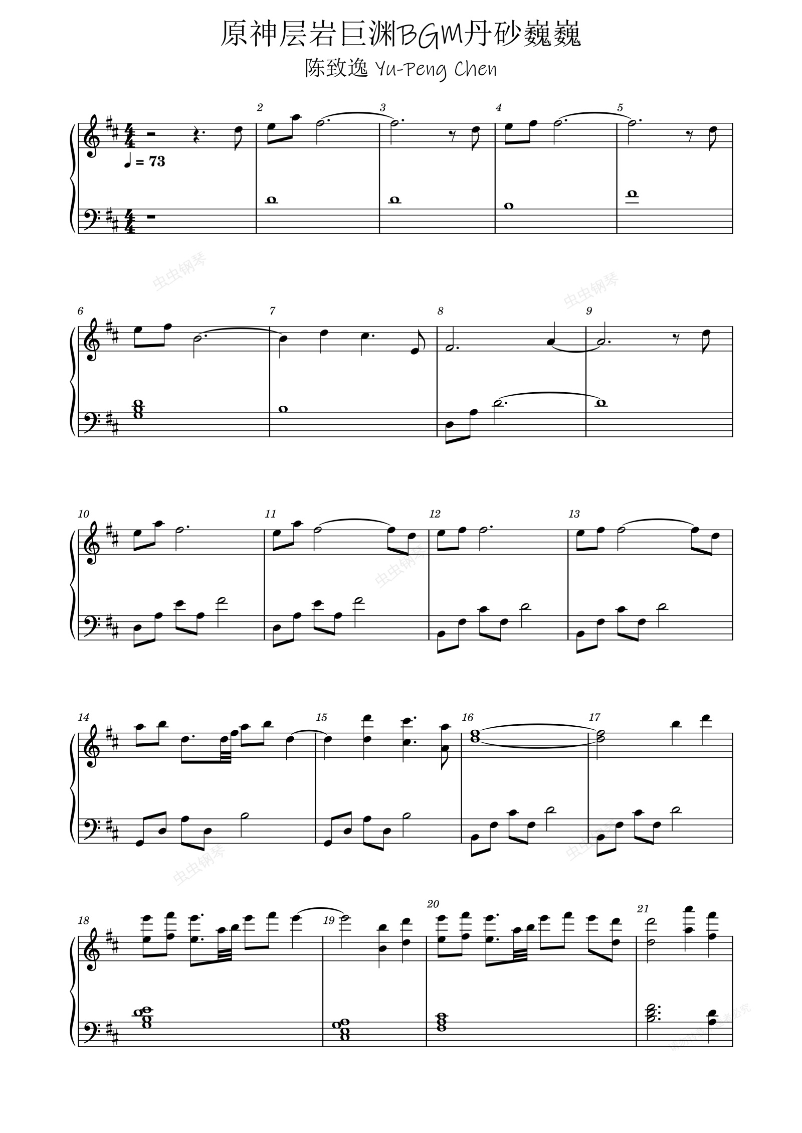 钢琴谱:原神层岩巨渊BGM丹砂巍巍 Wordless Cliffs
