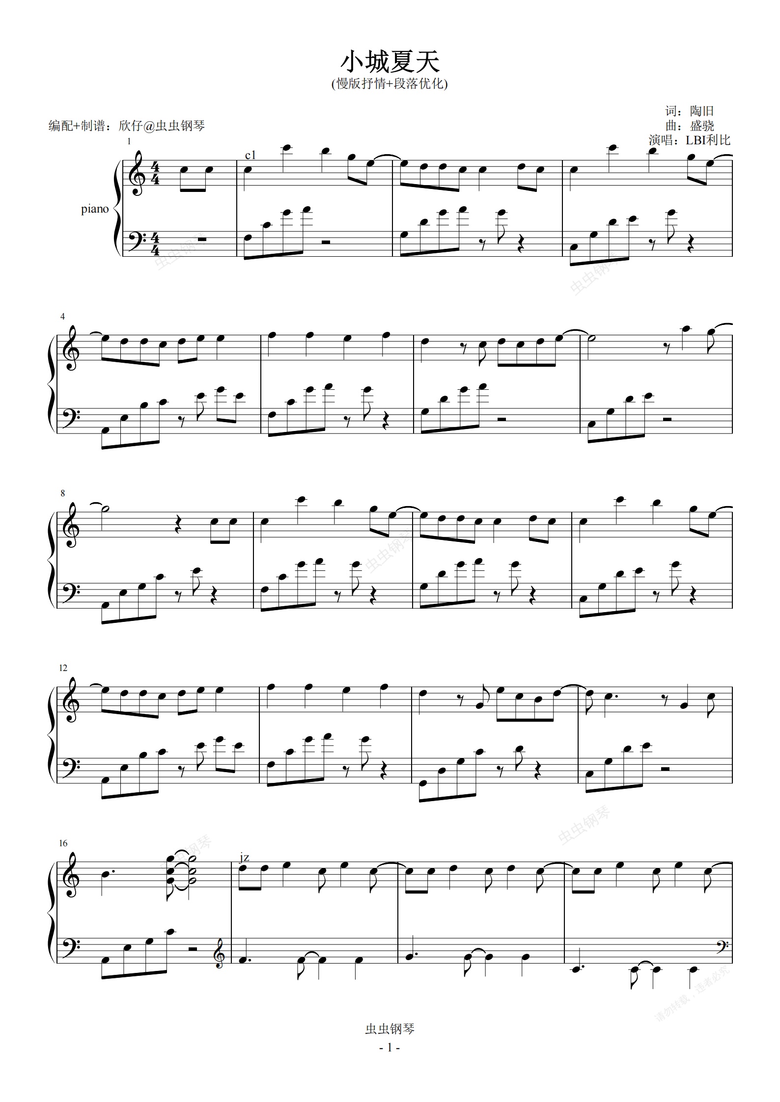 钢琴谱:LBI利比-C《小城夏天》(慢版抒情+段落优化)