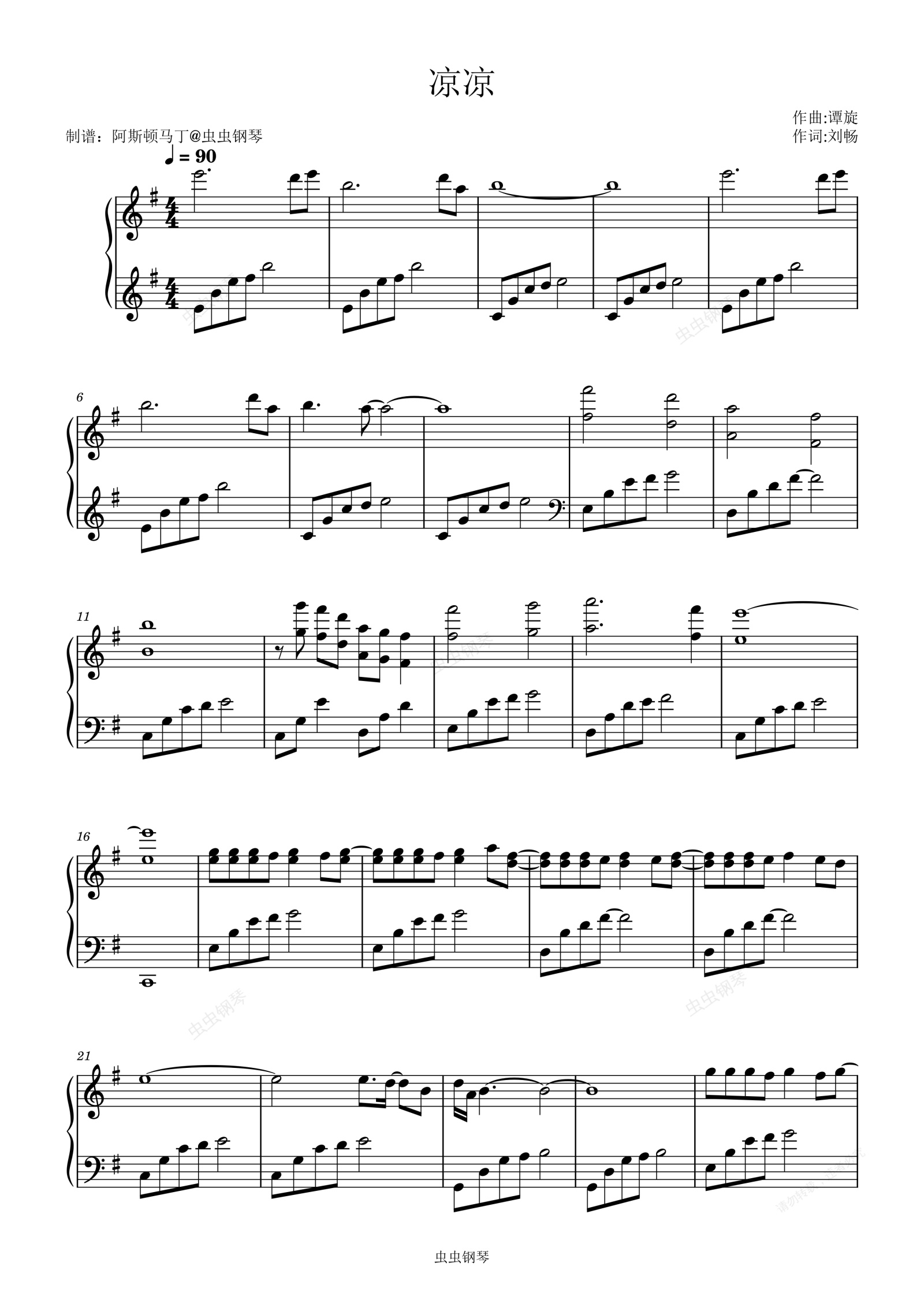 钢琴谱:凉凉 - 杨宗纬/张碧晨【初学简易版】