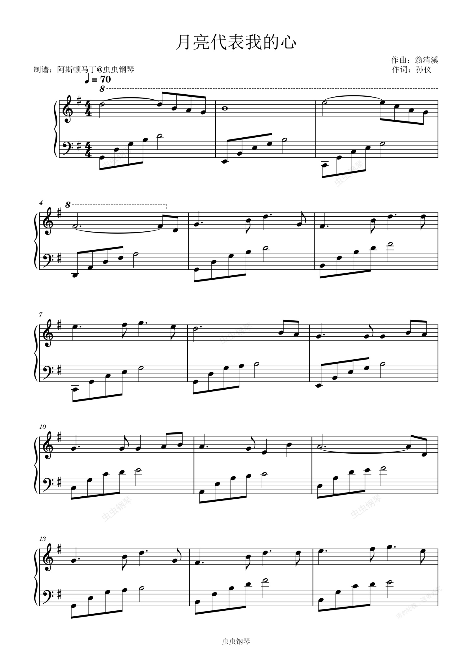 钢琴谱:月亮代表我的心 - 邓丽君【初学简易版】