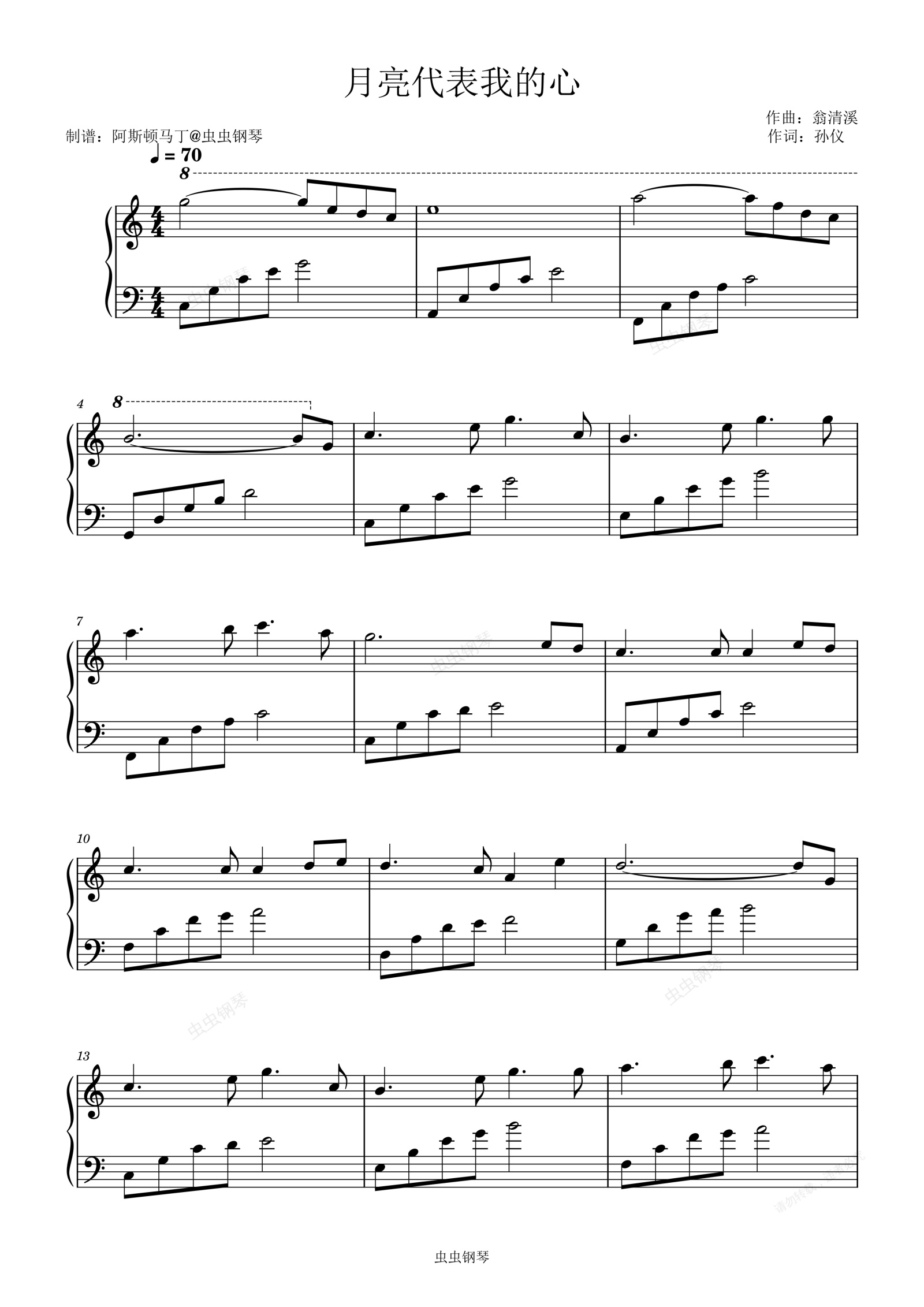 钢琴谱:月亮代表我的心 - 邓丽君【初学简易版】