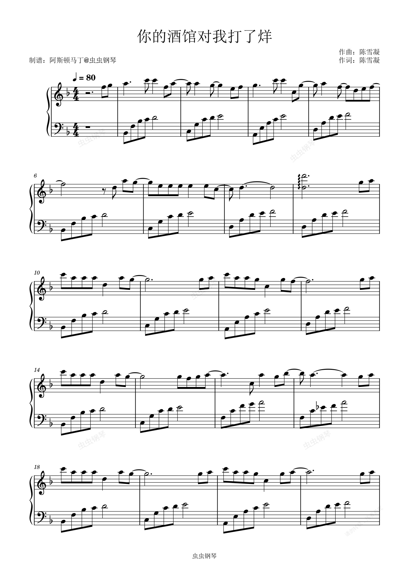 钢琴谱:你的酒馆对我打了烊 - 陈雪凝