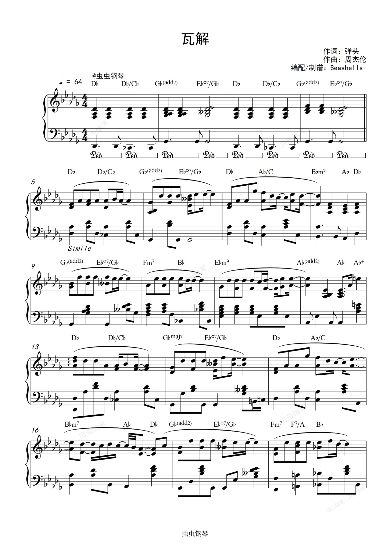 钢琴谱:周杰伦-《瓦解》精编钢琴独奏