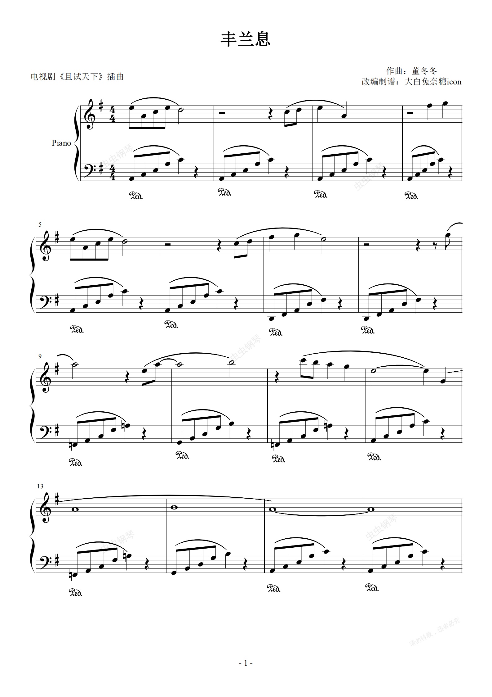 钢琴谱:且试天下-丰兰息-插曲