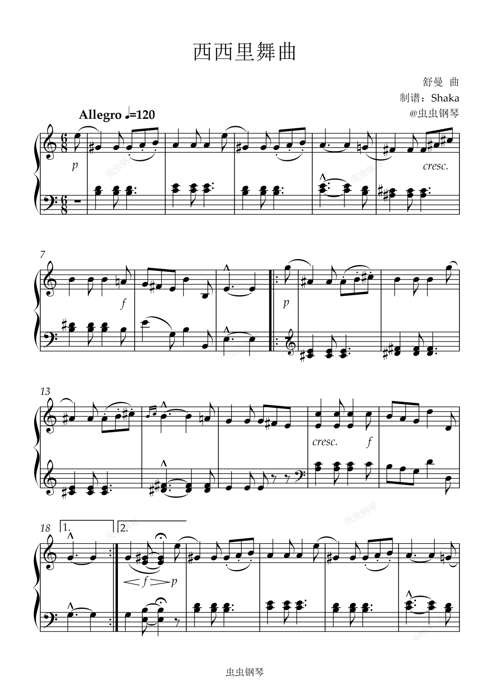 钢琴谱:西西里舞曲 舒曼 ZYY 考级曲目