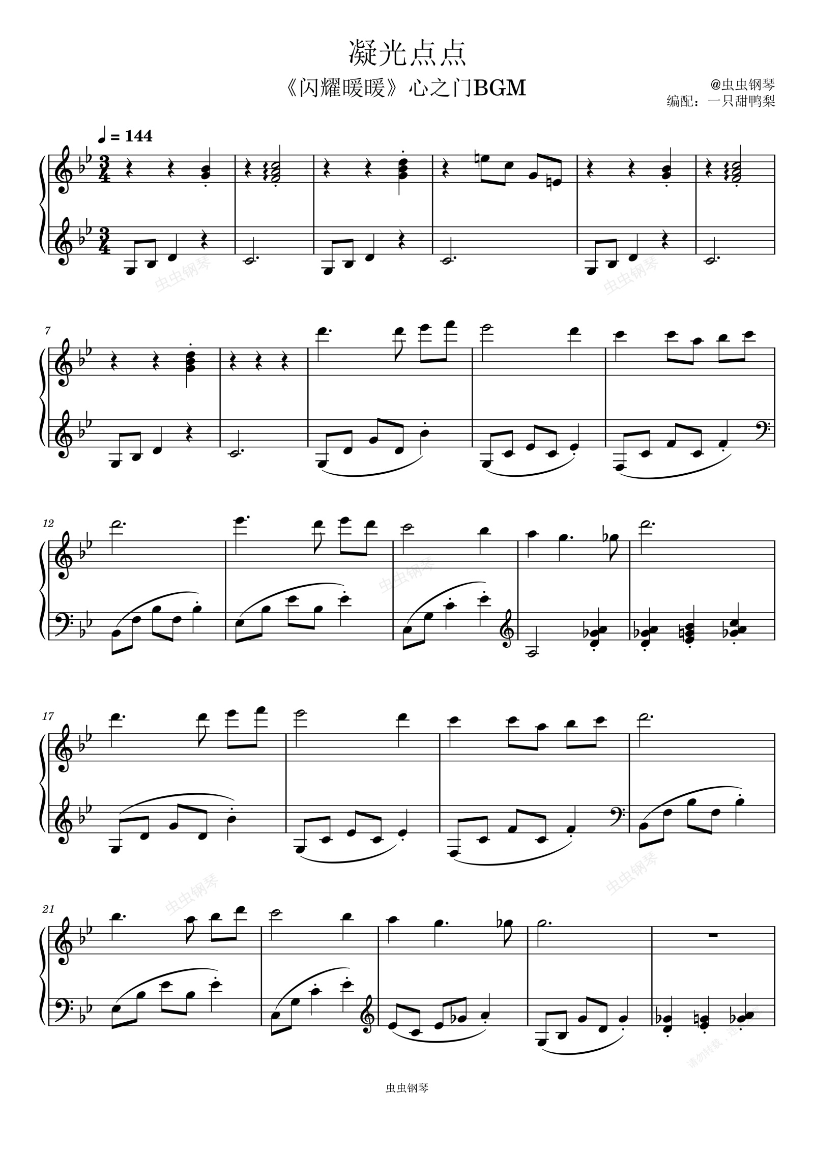 钢琴谱:凝光点点 《闪耀暖暖》心之门BGM