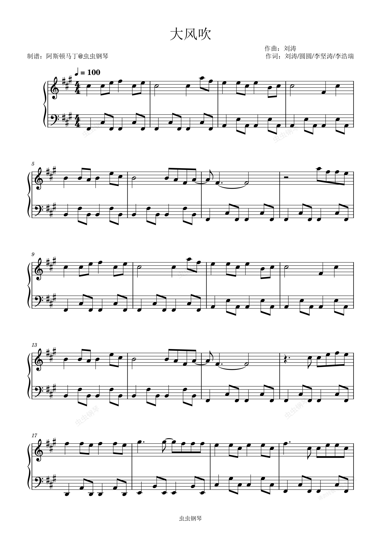 钢琴谱:大风吹 - 王赫野【初学简易版】