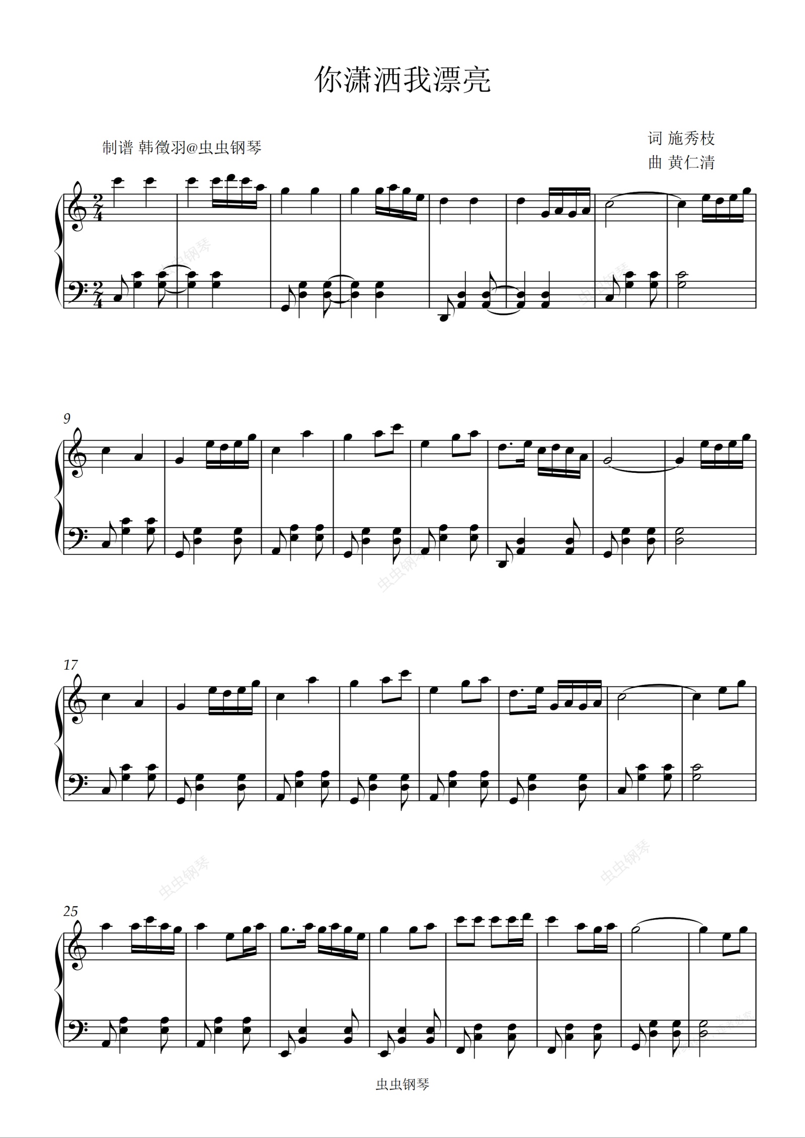 钢琴谱:你潇洒我漂亮 韩宝仪 C调简单易弹