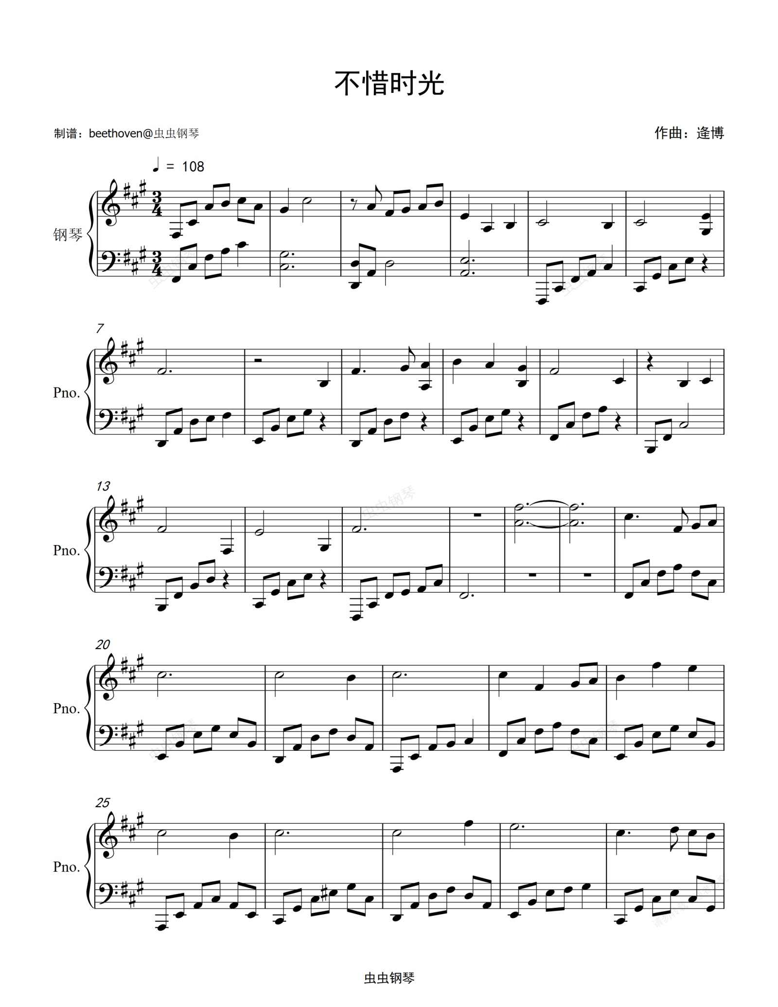 钢琴谱:不惜时光-梦华录片尾曲(好听版)